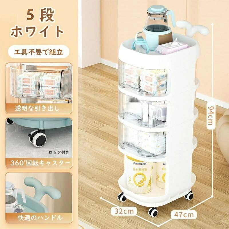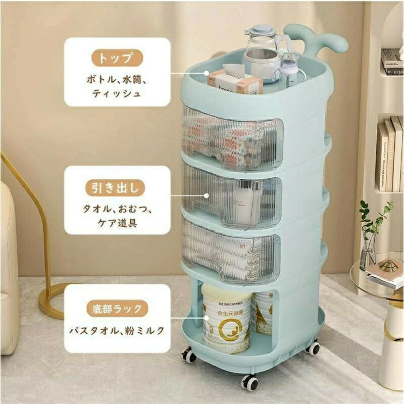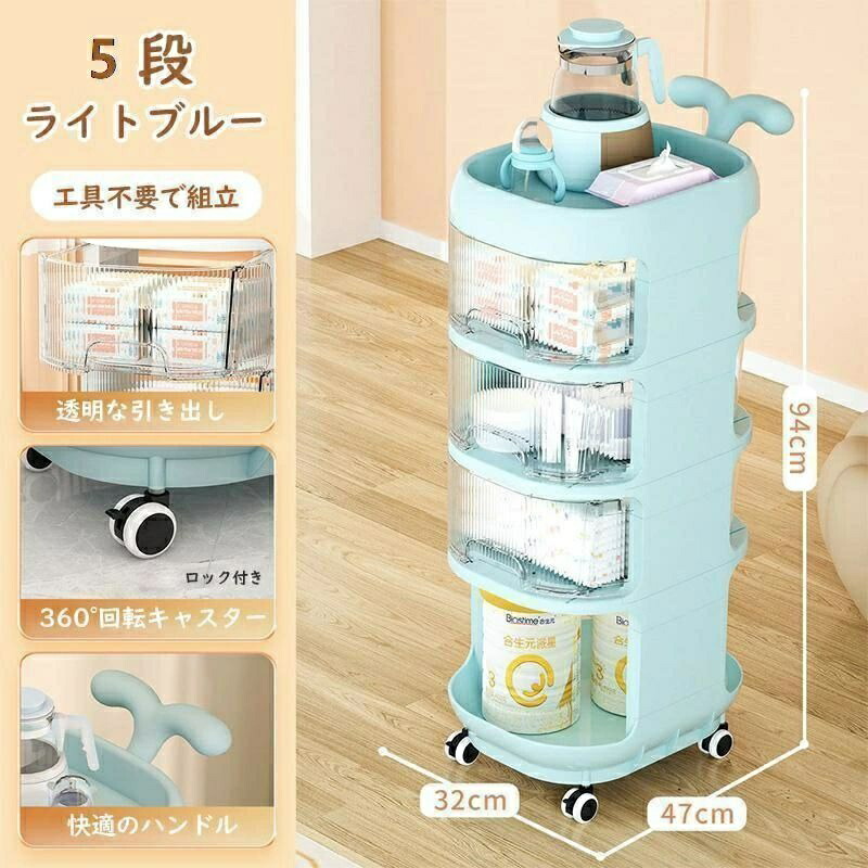 ベビーワゴン キャスター付き 4段 ベ ライトブルー ホワイト イエロー 4段 5段