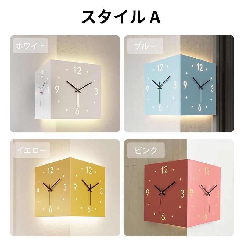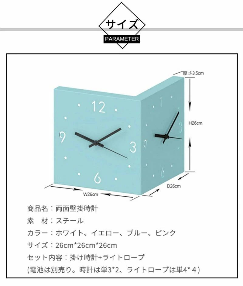 壁掛け時計 両面壁時計 インテリア 静 ブルー イエロー ピンク ホワイト