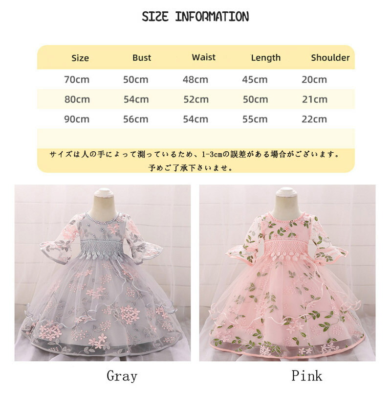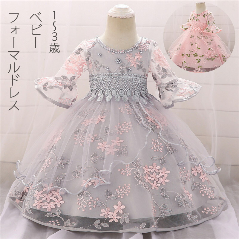 ベビー ドレス 子供ドレス オーガンジ キッズ ベビー マタニティ 豊富 グレー ピンク 70 80 90 110 120 130 140 150
