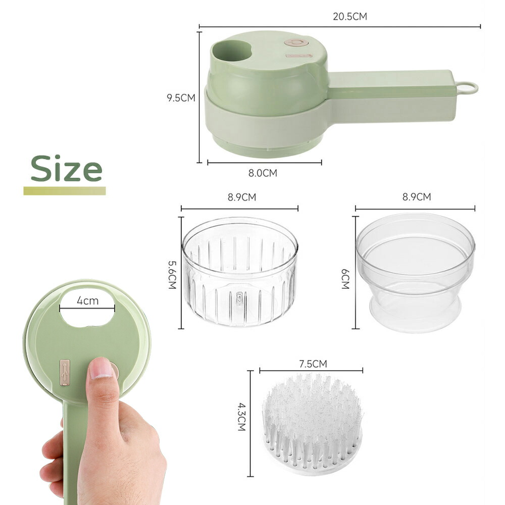 電動スライサー 充電式 野菜スライサー ネギ カッター 電動 1台多役 小型 USB-C 簡単洗浄 スライス みじん切 4in1 ポータブル キッチン家庭用 包丁不要 簡 スライサーセット