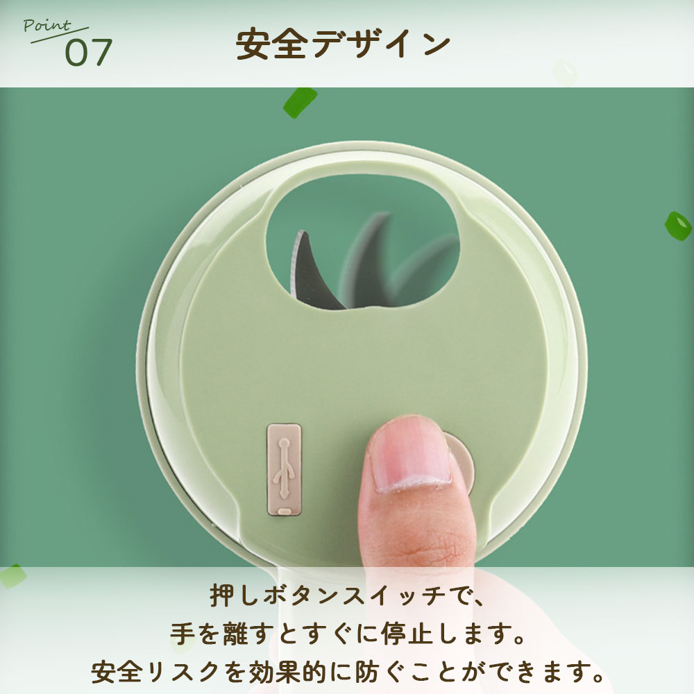 長い食材も直接チョッパーに入れることができ、手を汚さず、辛い食材で手がヒリヒリすることもありません。