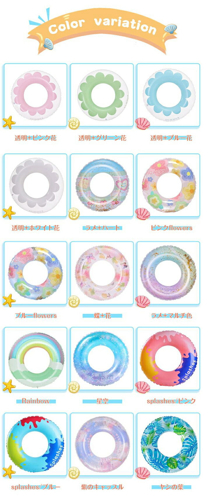 大人気 浮き輪 自動膨らむ仕様追加済 おもちゃ ゲーム 特集 透明+ピンク花 透明+グリーン花 透明+ブルー花 透明+ホワイト花 ラメ+ハート ピンクflowers ブルーflowers 蝶+花 ラメ+マルチ色 rainbow 星空 splashes/ピンク splashes/ブルー 紫のキャッスル ヤシの葉 自動膨らむ-うさぎ 自動膨らむ-恐竜 自動膨らむ-宇宙人 自動膨らむ-ウェーブ状 自動膨らむ-ブルー 自動膨らむ-ピンク 自動膨らむ-水色 自動膨らむ-ピンク/ネコ 60cm(145g) 70cm(165g) 80cm(220g) 90cm/取ってなし(285g) 90cm/取って付き(365g) 100cm/取っ手付き