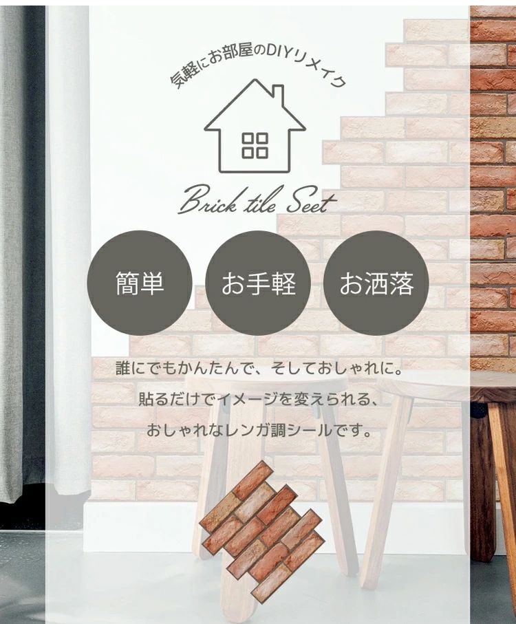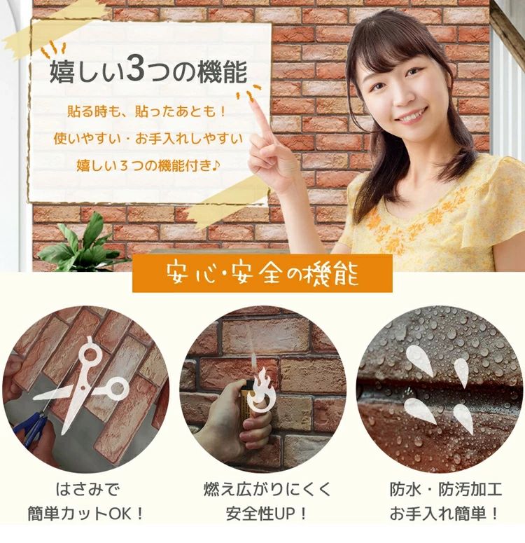 3D 壁紙 レンガ シート 立体 赤レ
