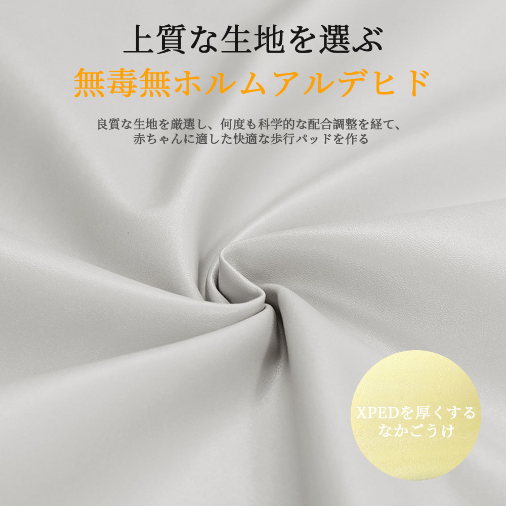 【安心の衝撃吸収】マット内部はクッション性のあるEPE素材でできており、4cmの厚みがあるので、よちよち歩きの赤ちゃんが転んでも安心。また、柔らかいだけでなく適度な硬さもあるので、沈み込みすぎず赤ちゃんの歩行の妨げとなりません。
