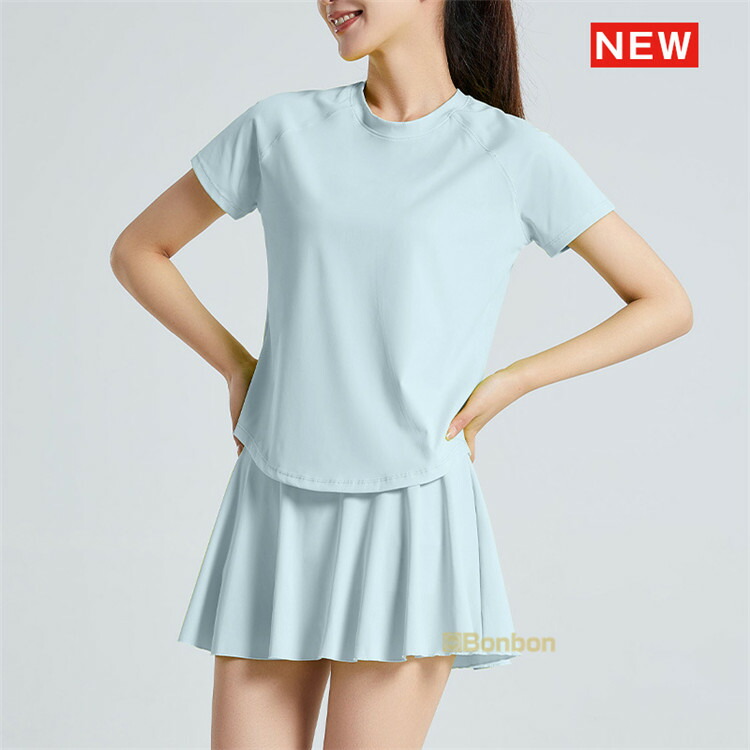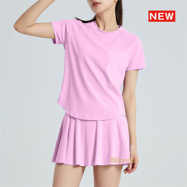 スポーツウェア レディース 上下セット テニスウェア 半袖 トップス Tシャツ ゴルフウェア スカート トレーニング 運動着 吸汗速乾 インナーパンツ付き 体操服 カジュアル 2点セット ラン 着痩せ
