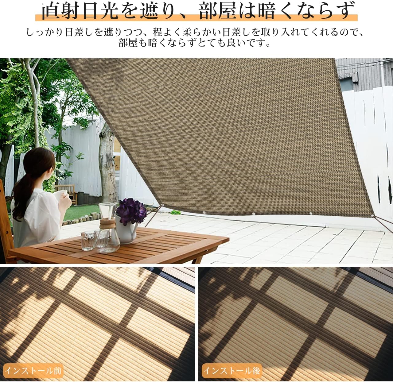 日よけ シェード モカ オーニング サ 2m*1m 2m*2m 2m*3m 2m*4m 3m*3m 3m*4m 3m*5m 3m*10m 4m*4m 4m*5m 4m*6m 4m*8m 4m*10m 5m*5m 5m*6m 5m*8m 6m*6m 6m*8m 6m*10m 8m*8m