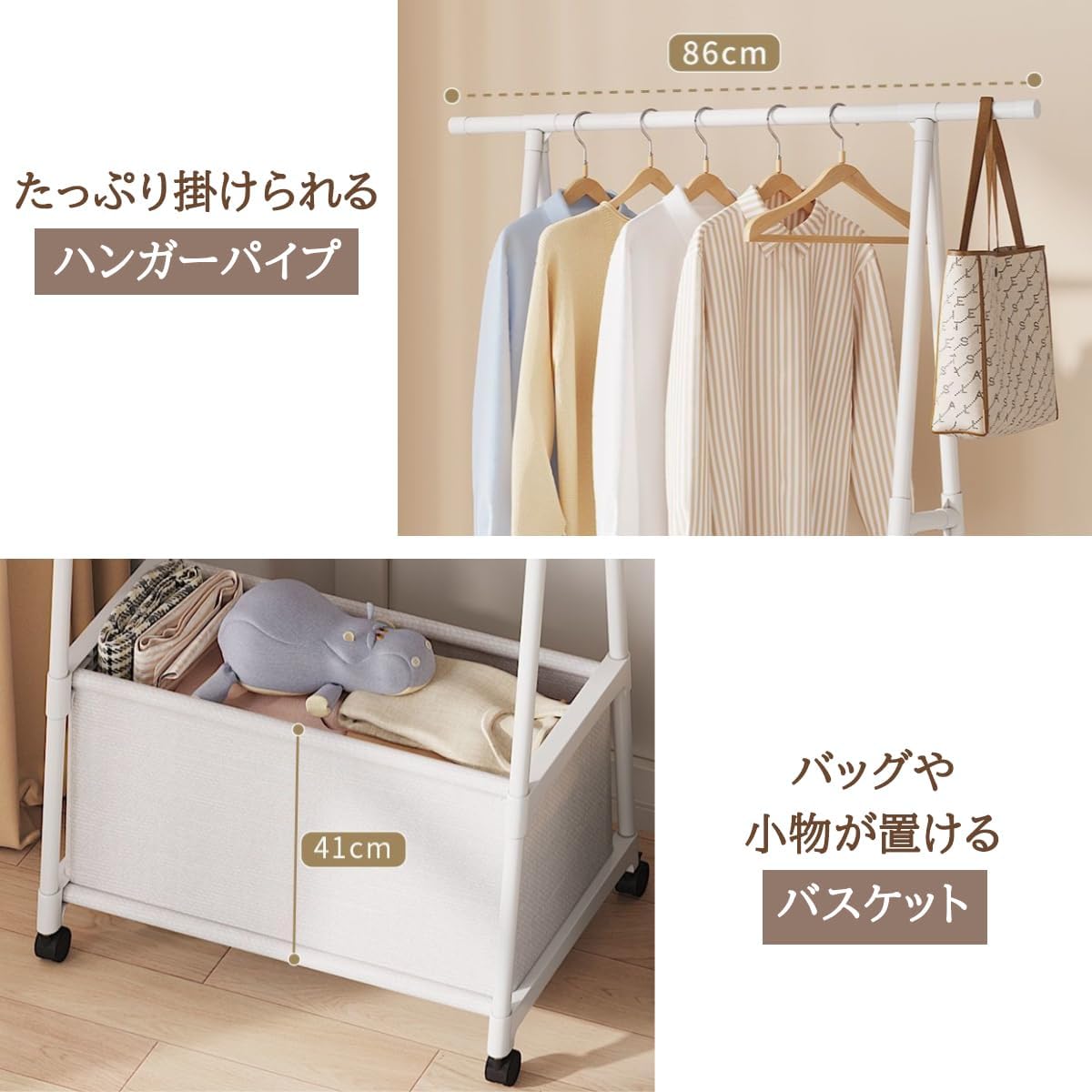 ハンガーラック キャスター付き パイプ ホワイト ピンク ブラック コーヒー