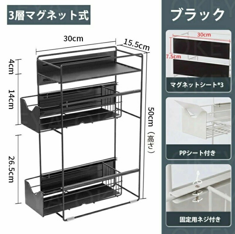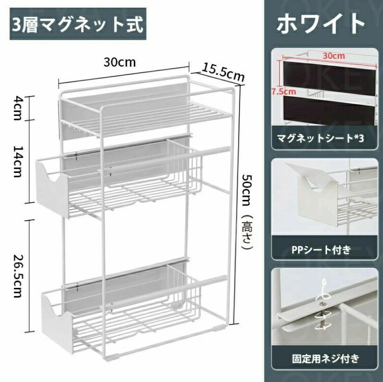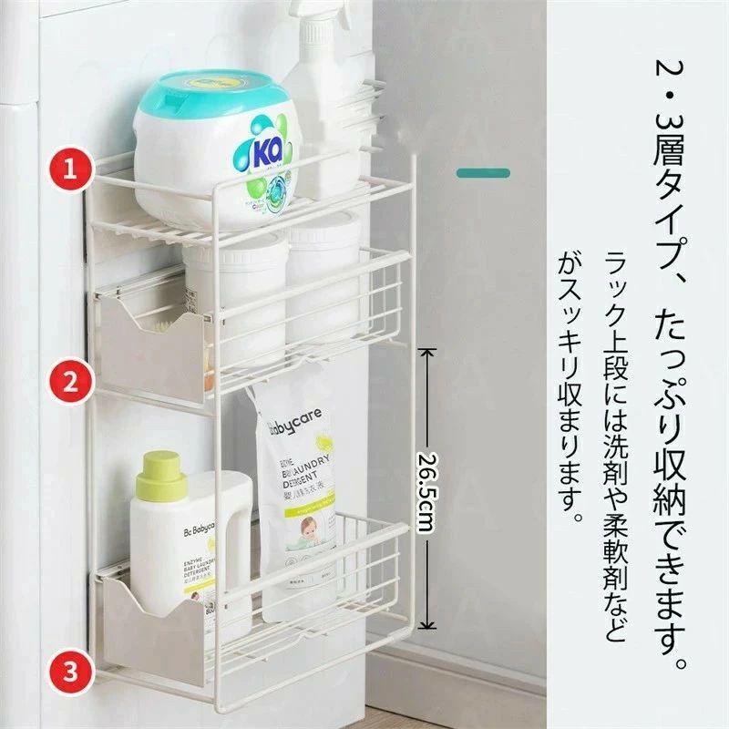 洗濯機横マグネット収納ラック 引き出し バス用品 整理棚 ラック 早い者勝ち ホワイト ブラック 2層 3層