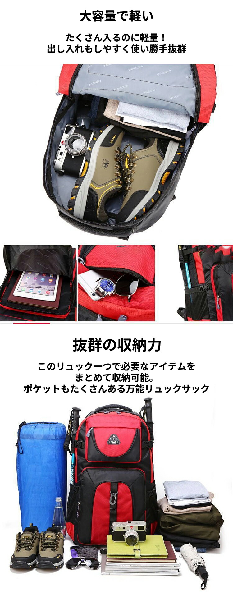 登山用リュック 大容量 70L 防災リ スポーツ アウトドア 新作 ブラック レッド ブルー オレンジ