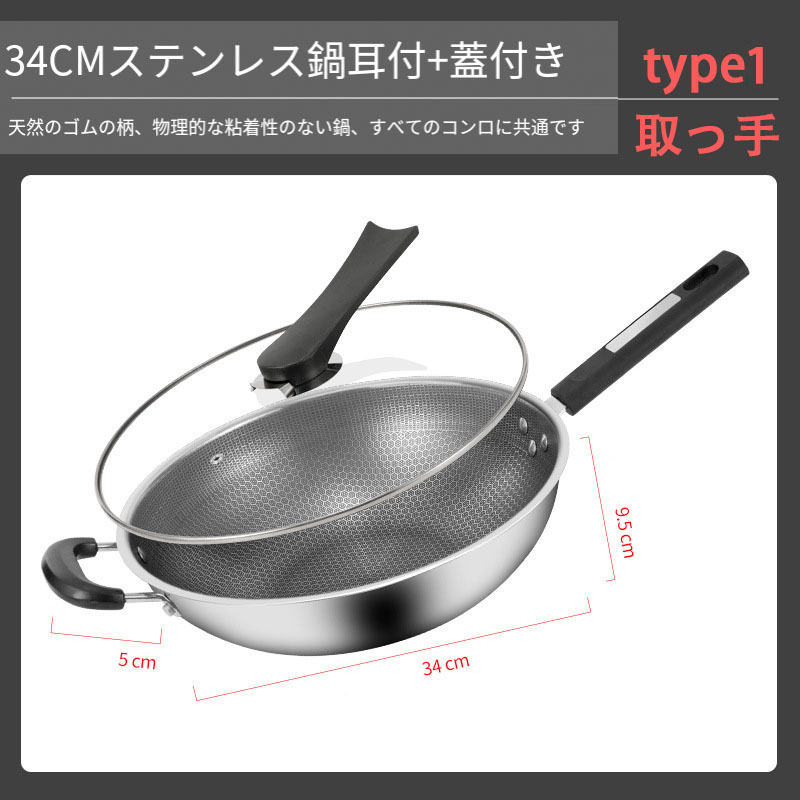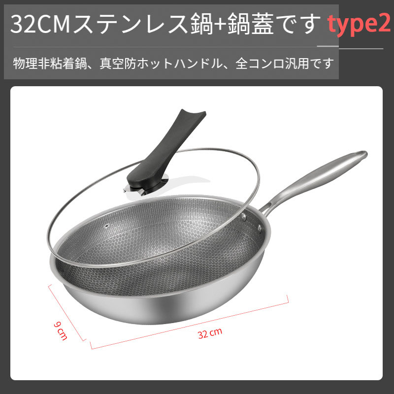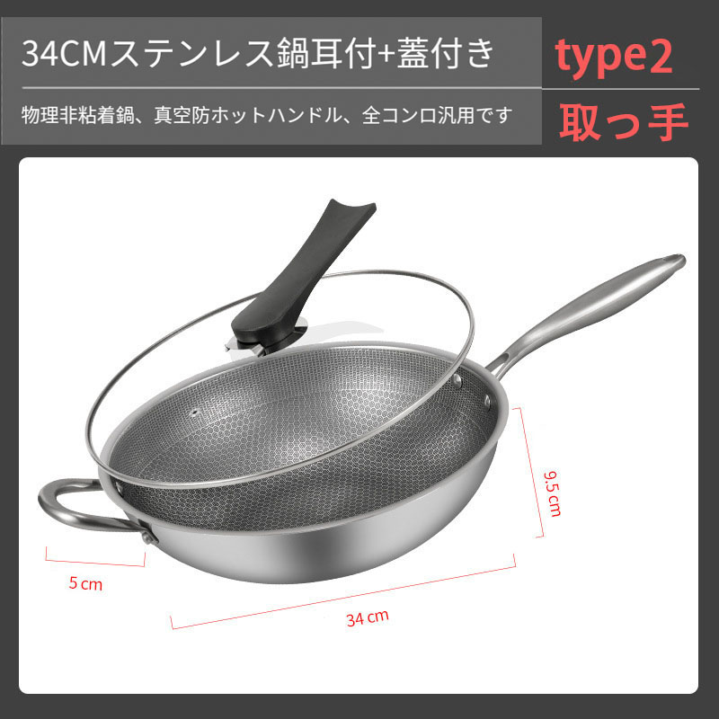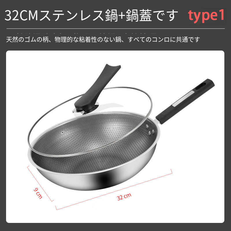 フライパン 高熱効率 炒め鍋 ステンレ type1 32cm type2 32cm type1 34cm type2 34cm type1 34cm+取っ手 type2 34cm+取っ手