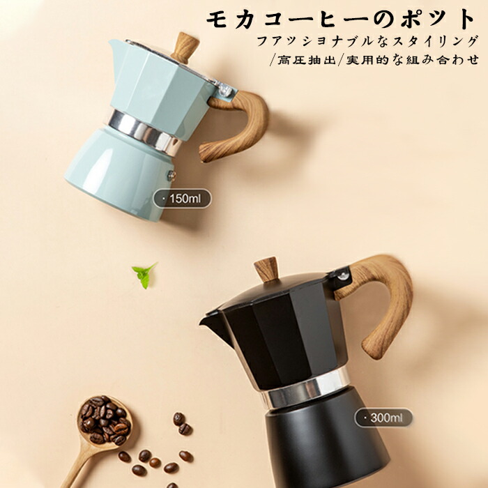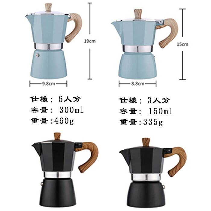 モカポット イタリア家庭用手淹れコーヒ キッチン用品 食器 調理器具 新登場! レイクブルー ブラック オフホワイト 150ml 300ml