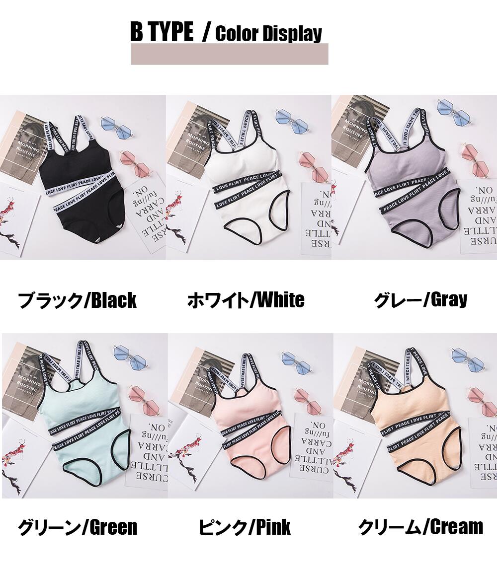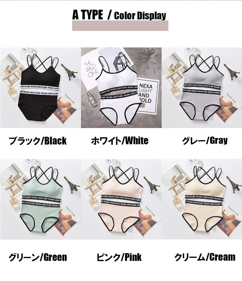 スポーツブラ ショーツ セット中学生下 レディース インナー 下着 セット ブラジャー&ショーツ 豊富 ブラック(TYPE-A) ホワイト(TYPE-A) グレー(TYPE-A) グリーン(TYPE-A) ピンク(TYPE-A) クリーム(TYPE-A) ブラック(TYPE-B) ホワイト(TYPE-B) グレー(TYPE-B) グリーン(TYPE-B) ピンク(TYPE-B) クリーム(TYPE-B)