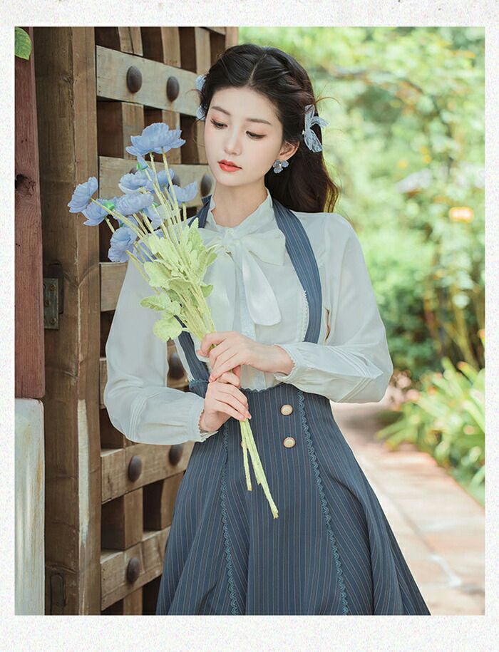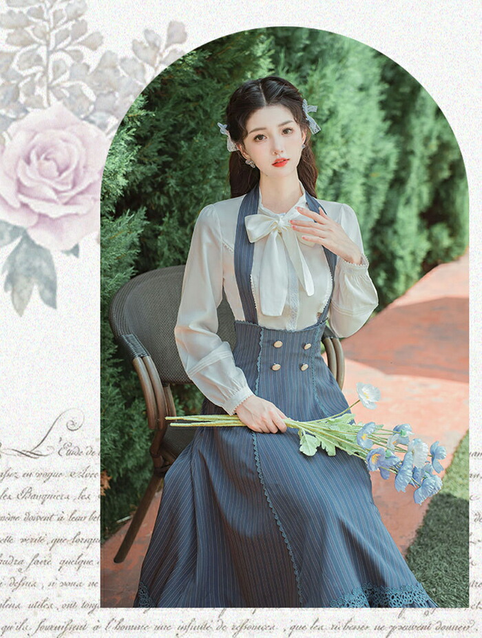 シアースリーブ ドッキングシャツ ボウタイシャツブラウス