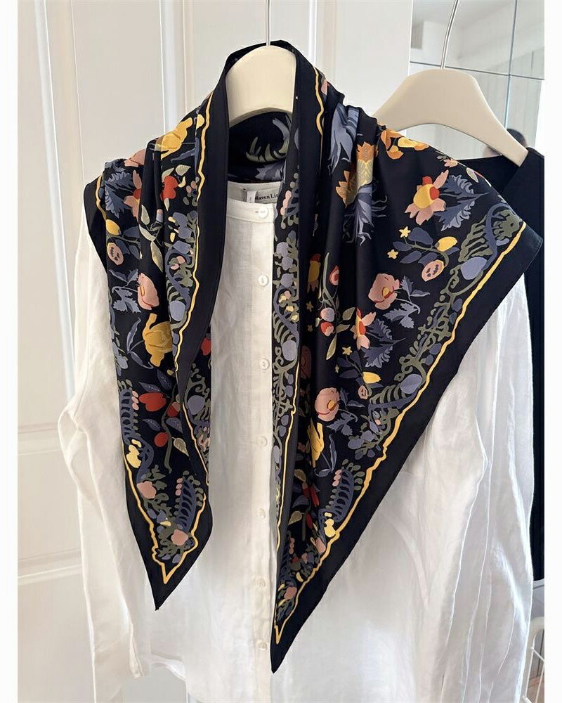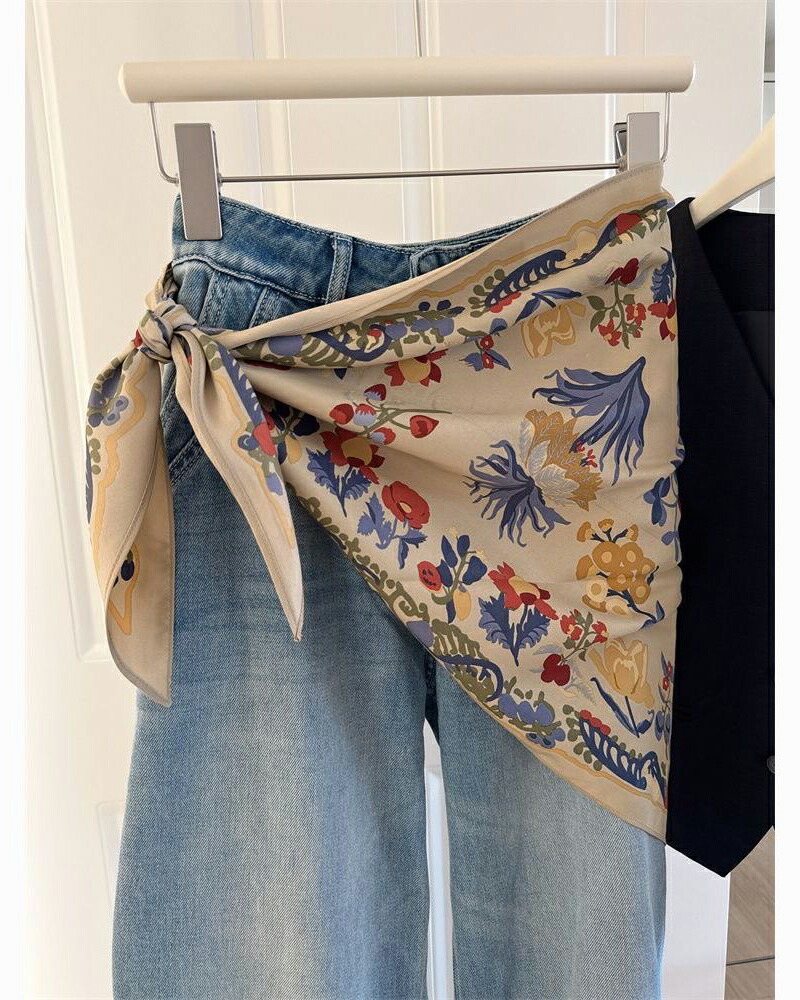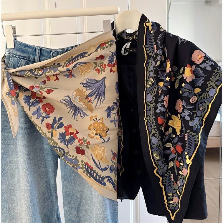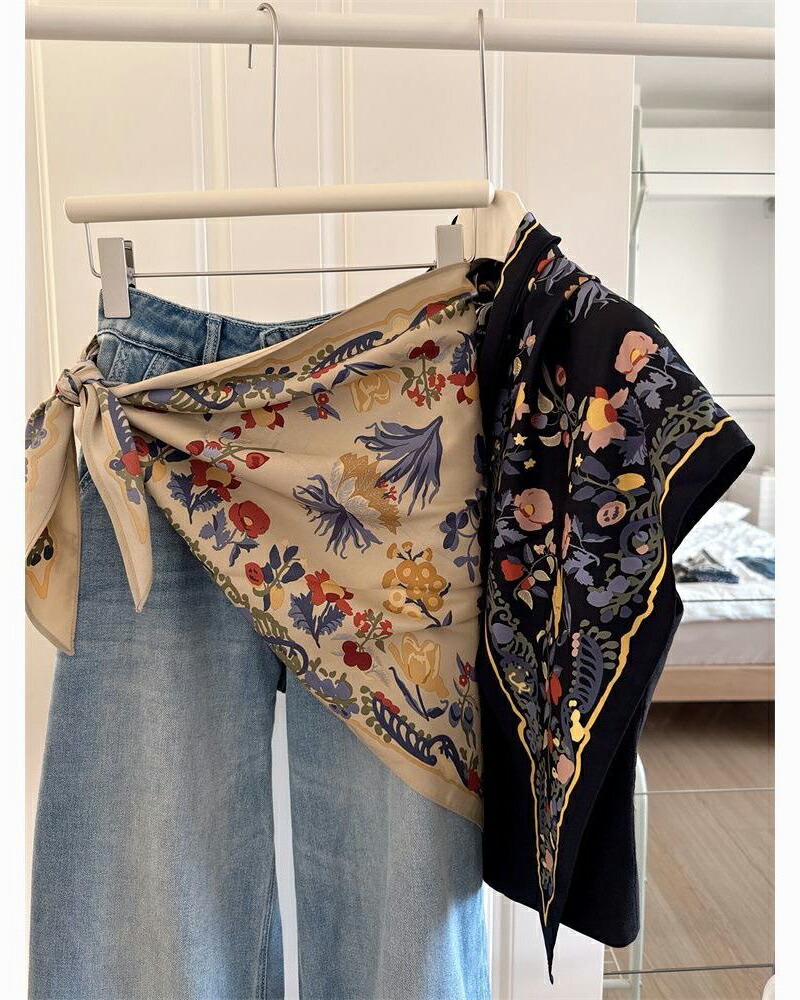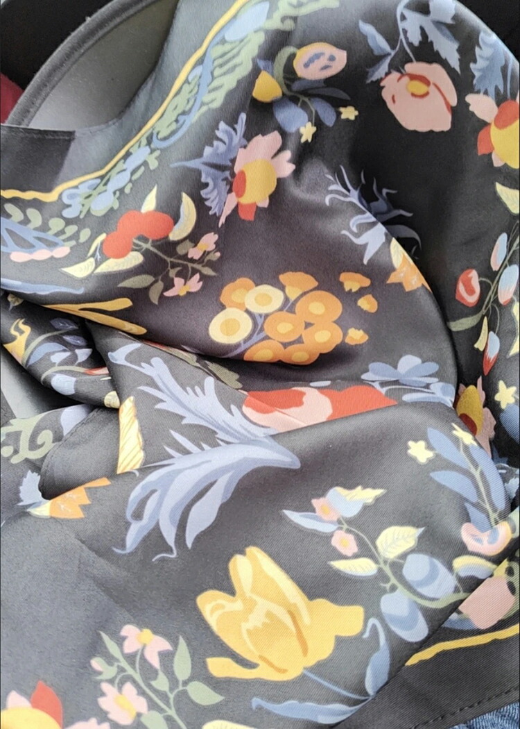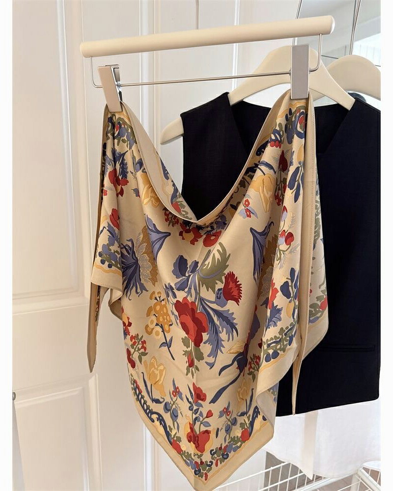 花柄トライアングルスカーフ 三角スカー バッグ 小物 ブランド雑貨 超目玉商品 ネイビー ベージュ
