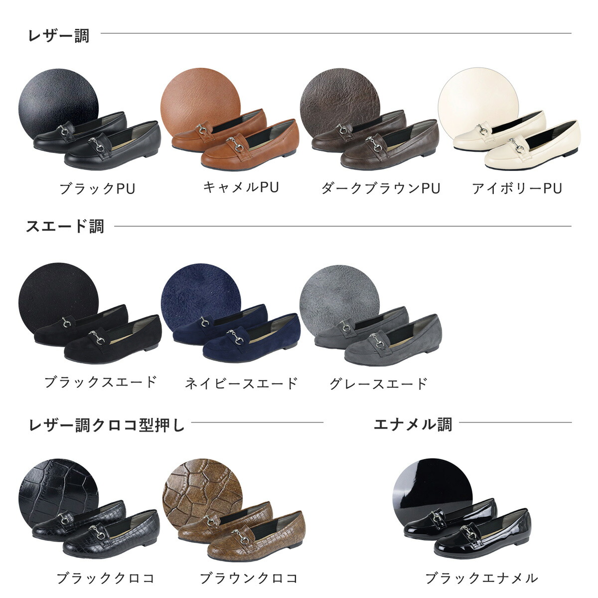 ローファー レディース ビット パンプ レディース靴 ローファー 豊富 ブラッククロコ ブラックエナメル ブラックPU ブラックスエード ブラウンクロコ キャメルPU ダークブラウンPU グレースエード アイボリーPU ネイビースエード SS(22.0~22.5cm) S(22.5~23.0cm) M(23.0~23.5cm) L(23.5~24.0cm) LL(24.0~24.5cm) LLL(24.5~25.0cm)