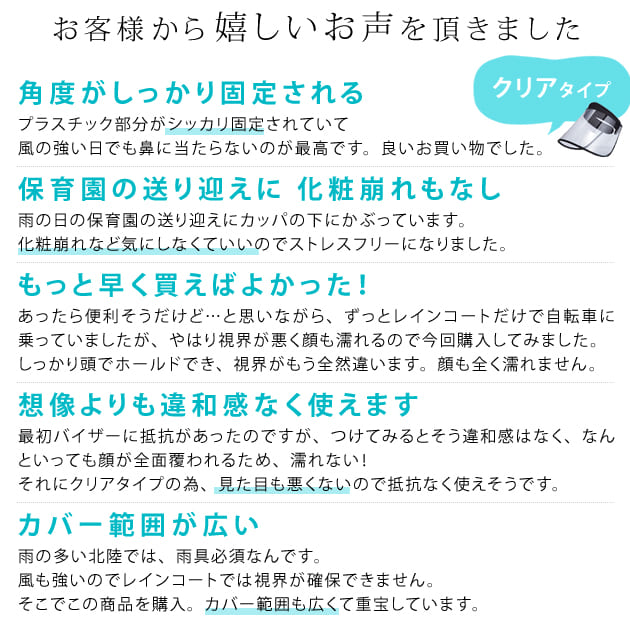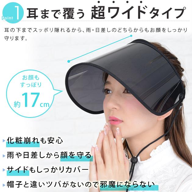 耳も隠れるワイド レインクリアバイザー バッグ 小物 ブランド雑貨 新登場! クリア(透明) ブラック(黒)
