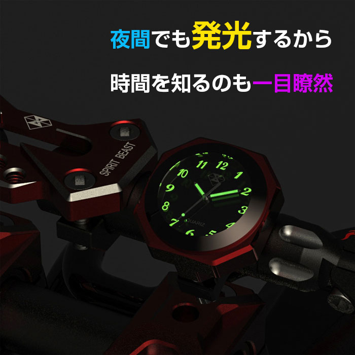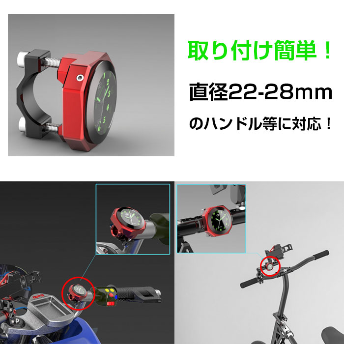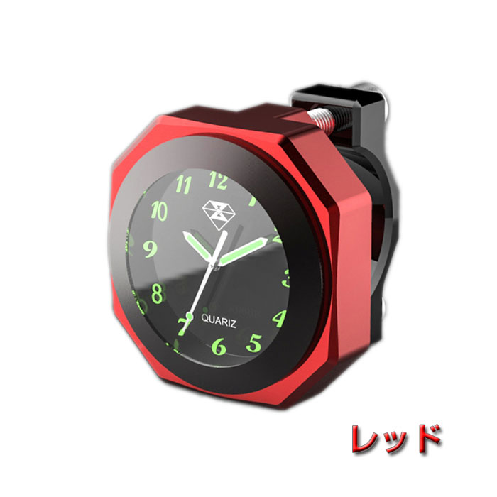 バイク用 アナログ時計 ハンドルウォッ レッド シルバー ブラック