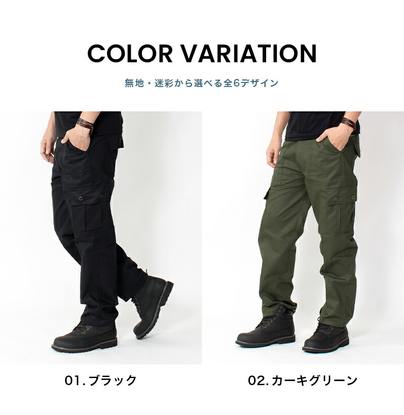 迷彩 カーゴパンツ 6ポケット ミリタ ズボン パンツ 新登場! W30(S) W32(M) W34(L) W36(XL) 01.ブラック 02.カーキグリーン 03.ネイビー 04.ウッドランドB 05.ウッドランドC 06.シティカモ