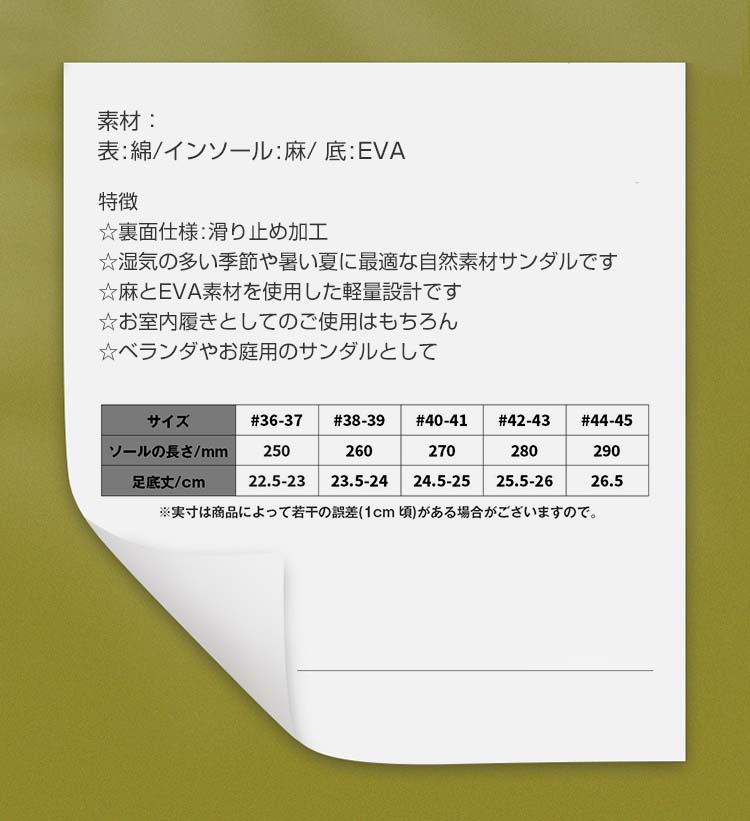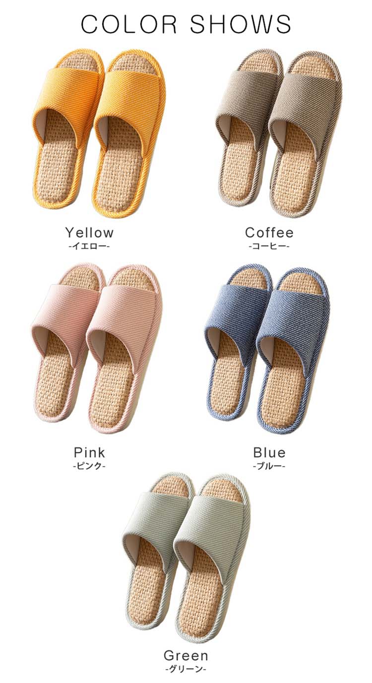 スリッパ 夏用 室内用 麻 夏用スリッ 日用品雑貨 文房具 手芸 通販 36-37 38-39 40-41 42-43 44-45 イエロー コーヒー ピンク グリーン ブルー
