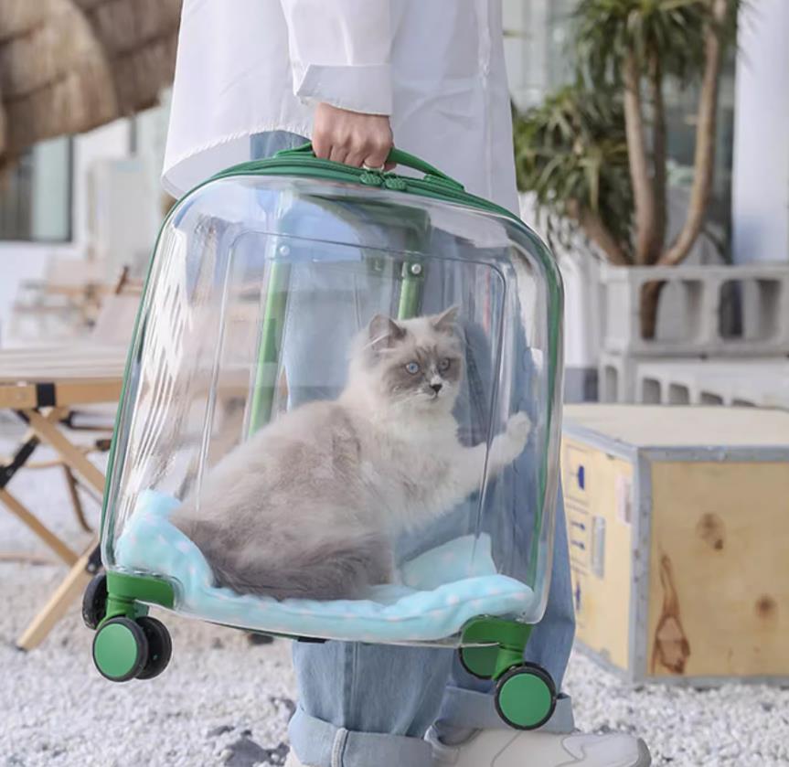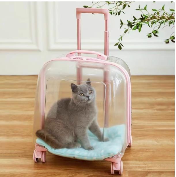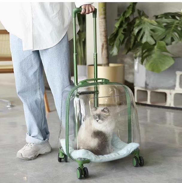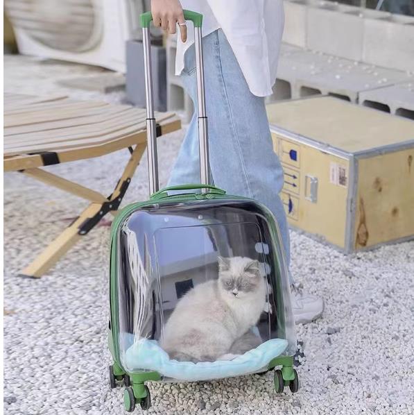 ペットキャリーケース ペットスーツケー 犬用品 キャリーバッグ カート カート 続々登場 ピンク グリーン半透明 グリーン全透明