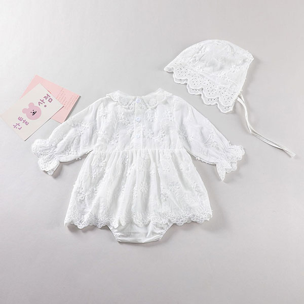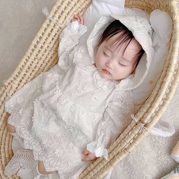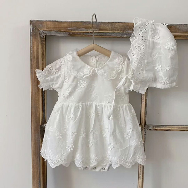 帽子付き 刺繍 ふんわり セレモニード ベビー ベビー服 ファッション ベビードレス セレモニードレス 豊富な品揃え 【長袖】ホワイト 【半袖】ホワイト 66cm 73cm 80cm 90cm 100cm