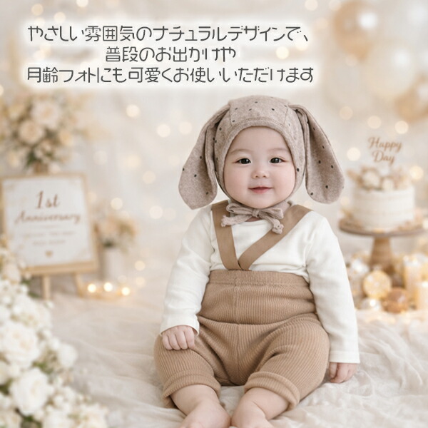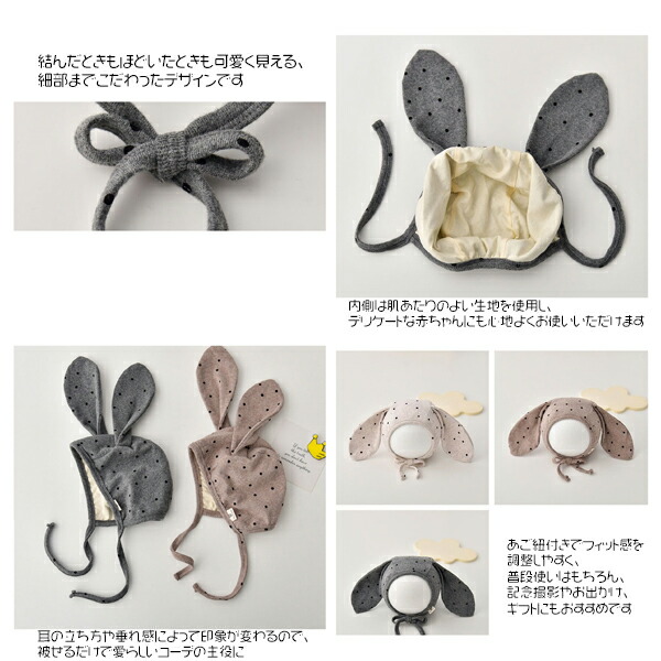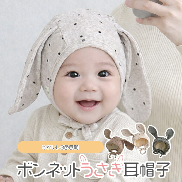 ベビー うさぎ耳ボンネット帽子 出産祝 ベビー ベビー服 ファッション 帽子 その他 早い者勝ち カーキ ベージュ グレー