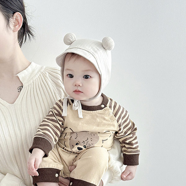 春夏秋冬オールシーズンくまちゃんボンネ キッズ ベビー マタニティ 新登場! アプリコット ベージュ ホワイト