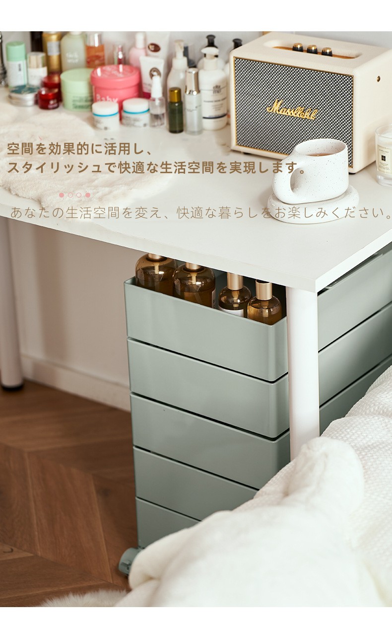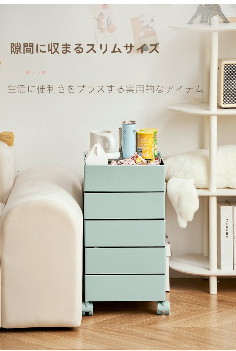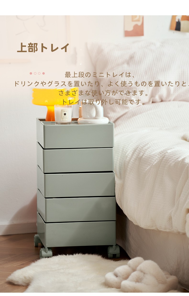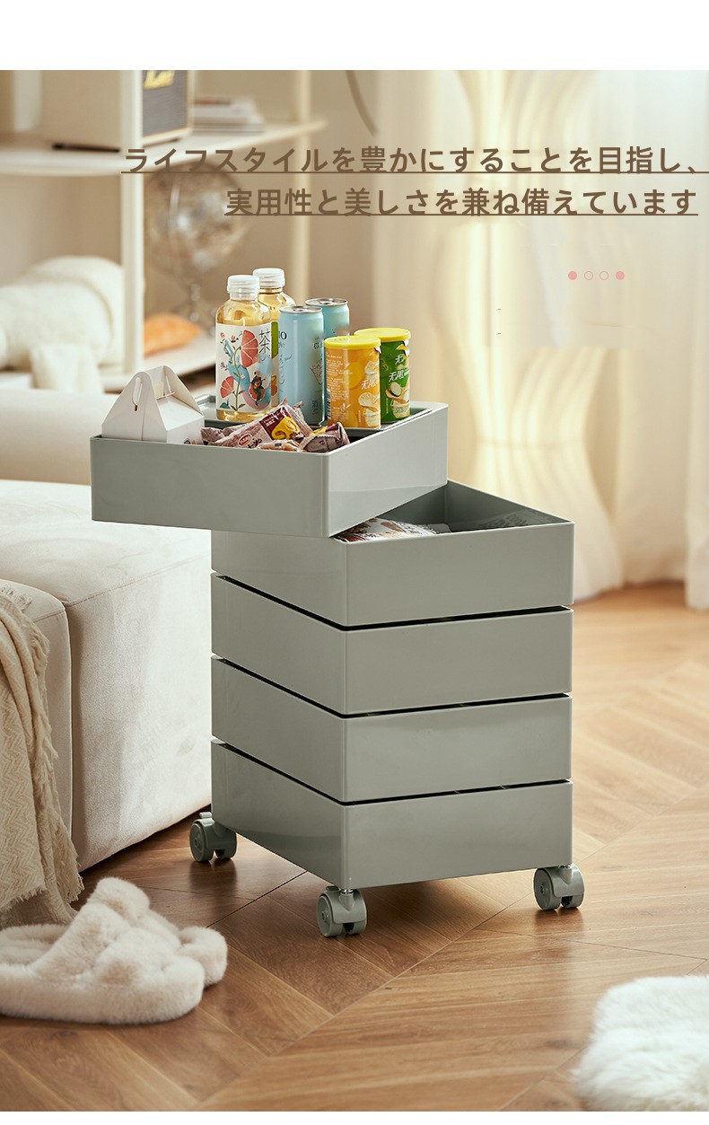 ins 4段 5段トレイ サイドワゴン 完成品 ラック キッチンワゴン キャスター付き 組み立て不要 360°回転式 収納家具 棚 コンテナ トレイ キャスターワゴン ドロワー リプロダクト