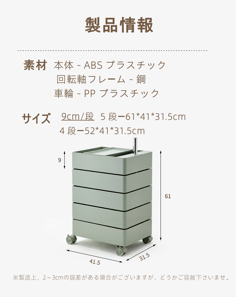 ※製品到着時に、一部の引き出しの垂直配置が均等でない場合、 該当の引き出しをずれた反対方向に2~3回回転させて使用してください。