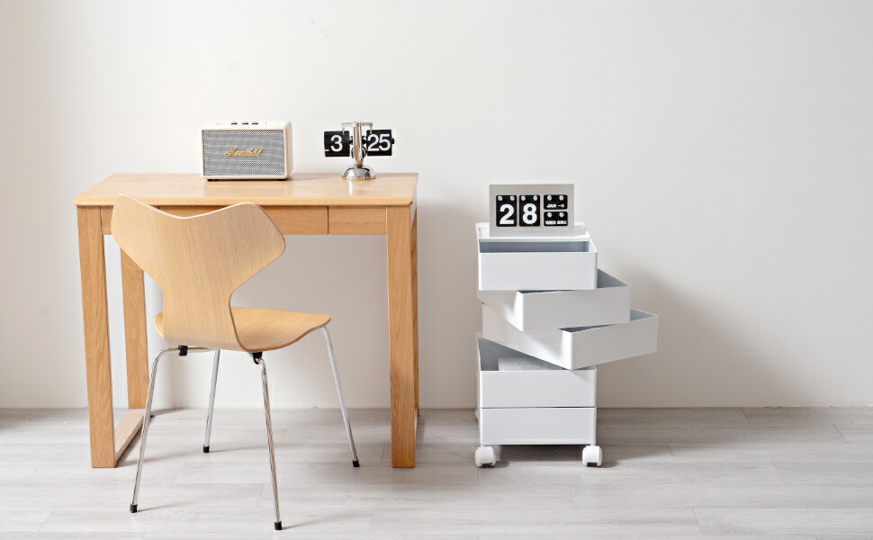360°回転可能な柔らかい車輪を使用して、 便利に使用できます。 車輪を装着するだけで完成する簡単組み立て製品です。 本体と同じ色の車輪で統一感をプラスしました。