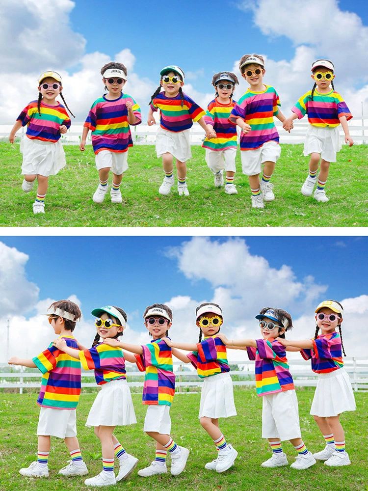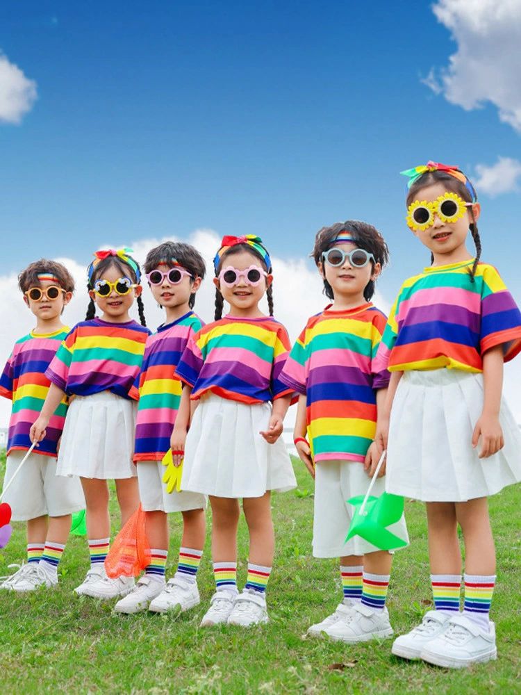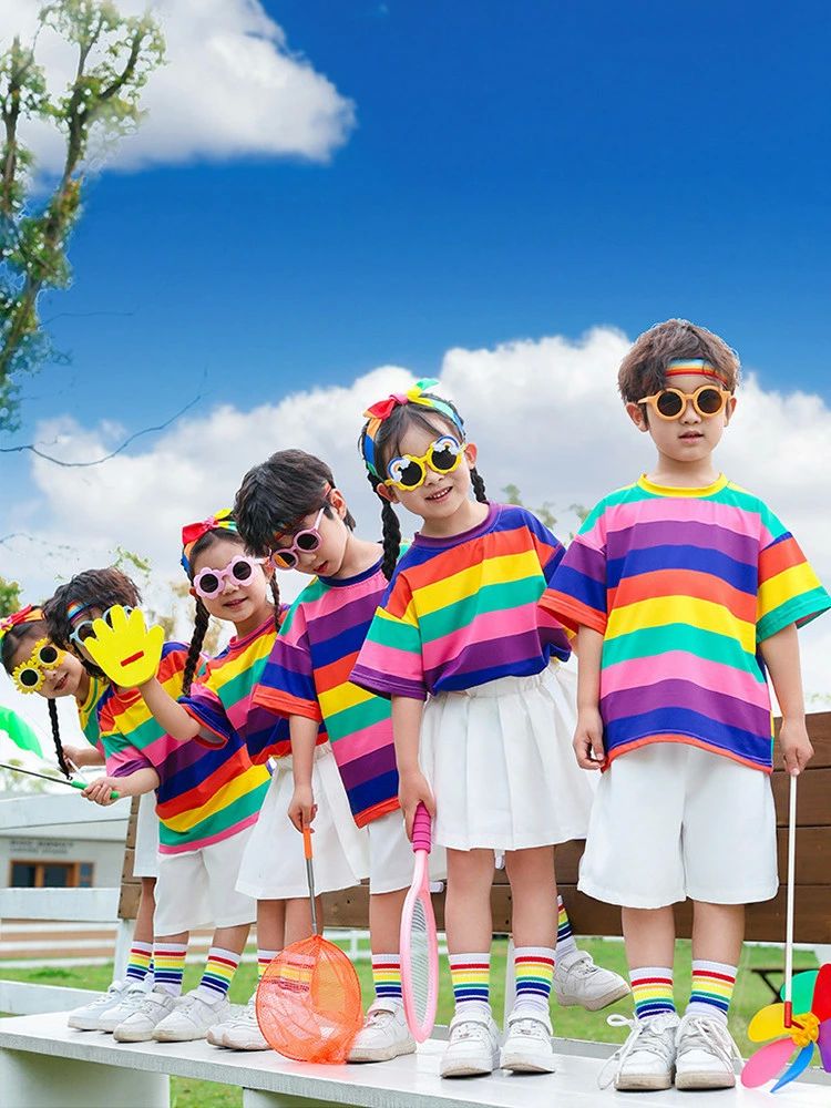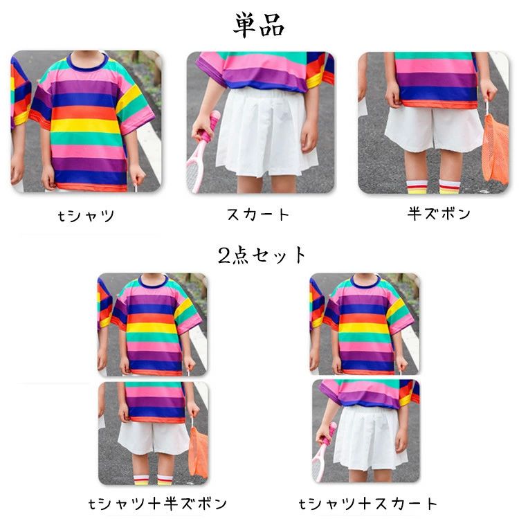 上下 ダンス衣装 キッズ 虹色tシャツ キッズ スーツ カジュアルセットアップ カジュアルパンツセット 早い者勝ち tシャツ スカート 半ズボン tシャツ+スカート tシャツ+半ズボン 100cm 110cm 120cm 130cm 140cm 150cm 160cm 170cm 180cm