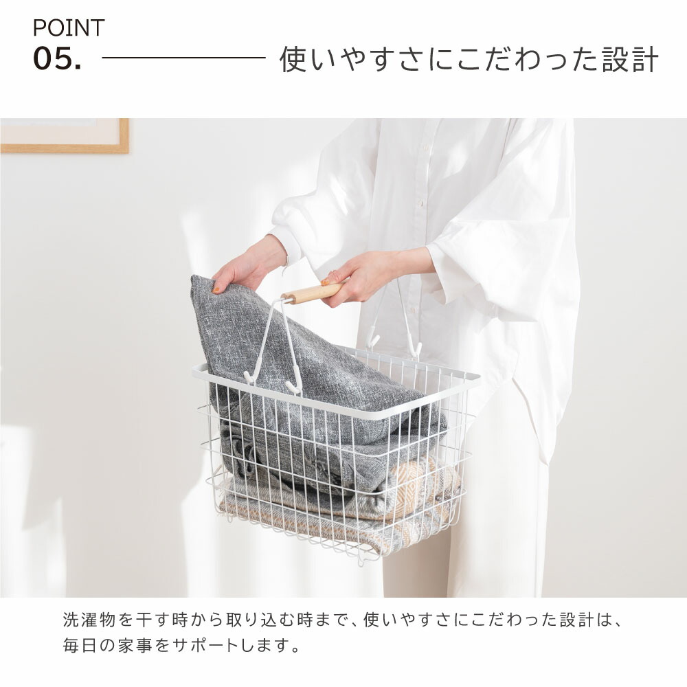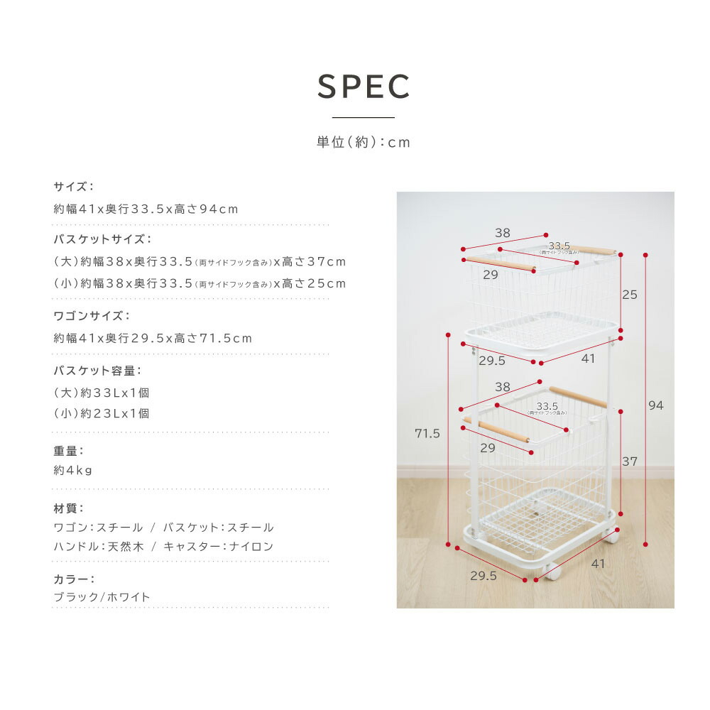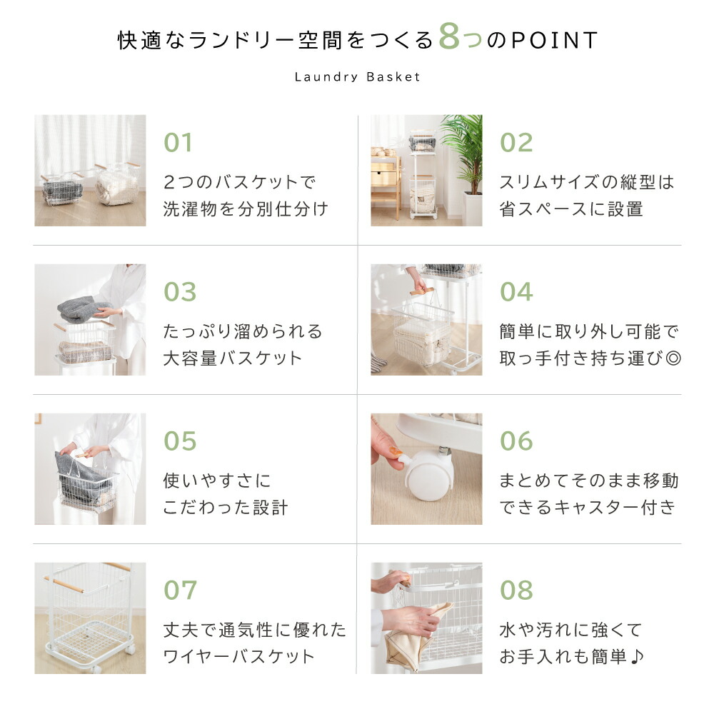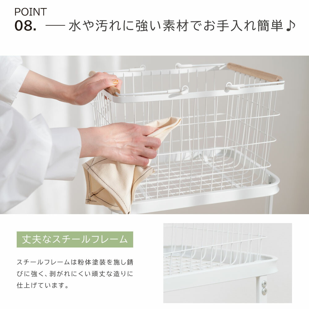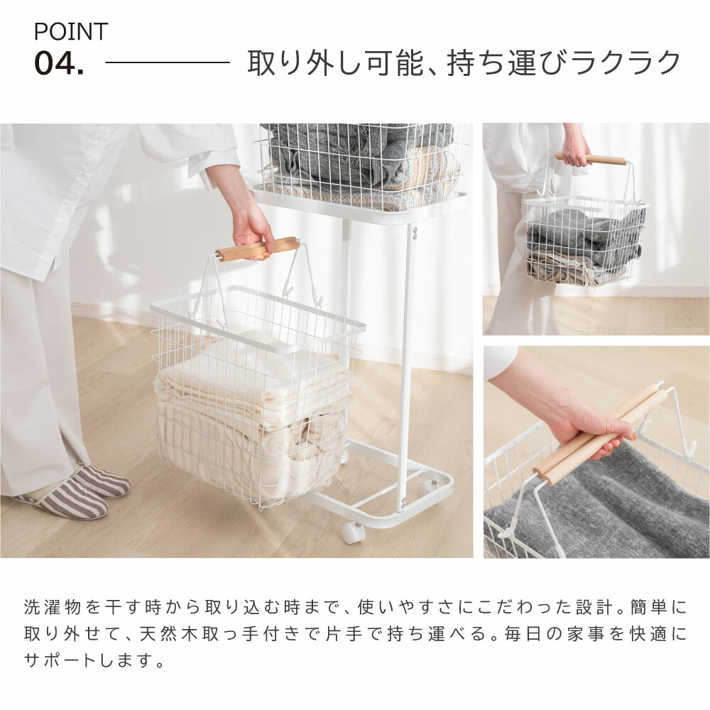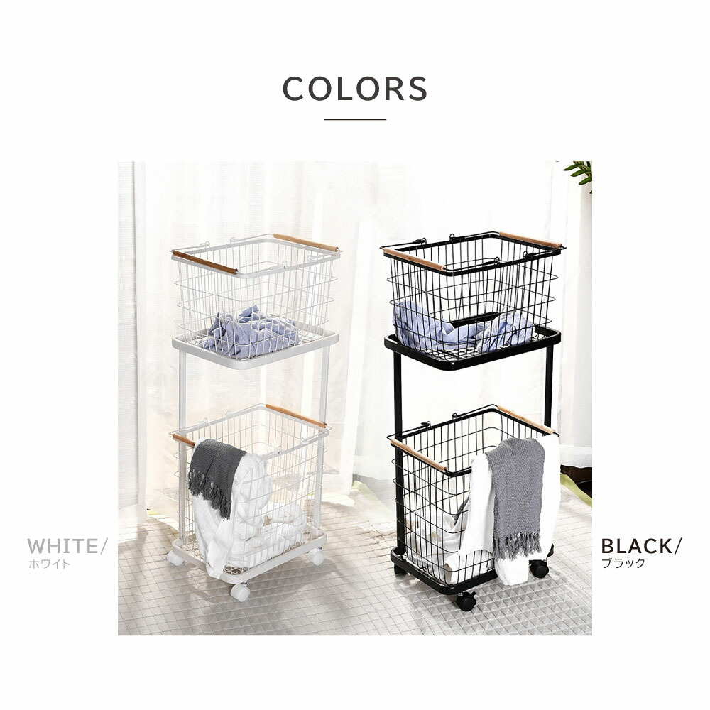 ランドリーバスケット キャスター付き ホワイト ブラック