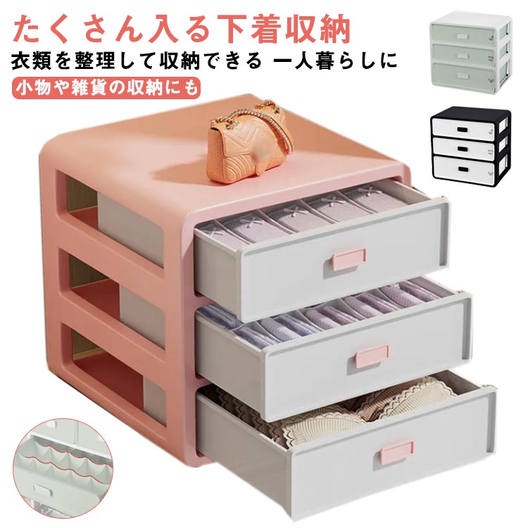 下着 ケース ブラジャー 収納 大容量 三段 タンス 仕切り 小さい 可愛い ミニ ミニチェスト 3段 ブラ 引き出し ランジェリー 型崩れしない チェスト インナー インテリア ボックス 靴下