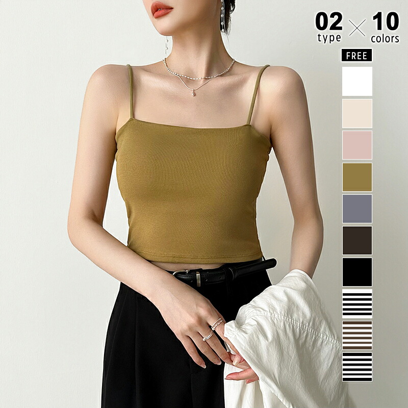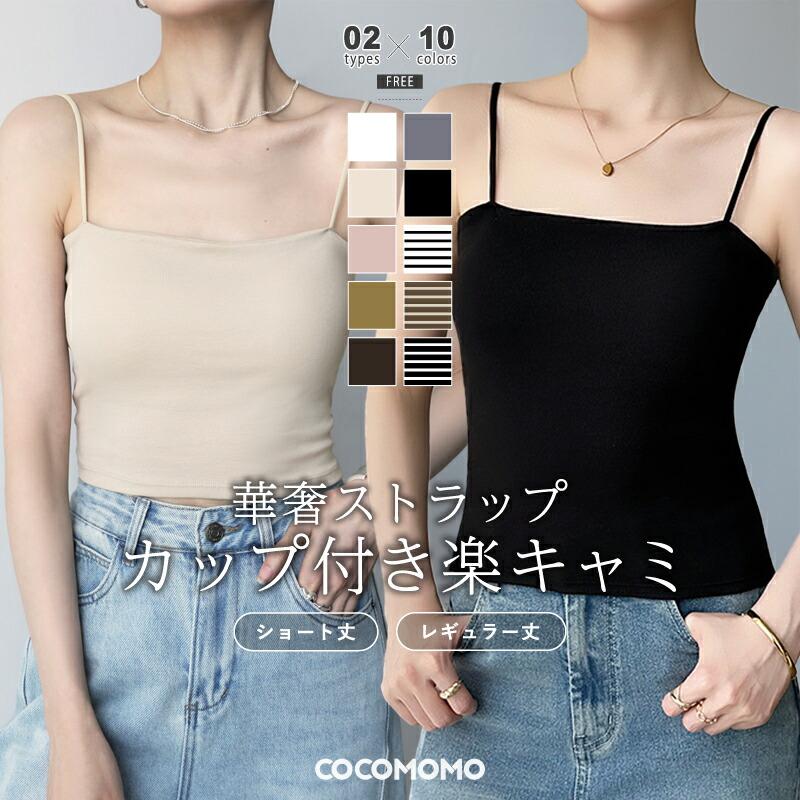 楽キャミ カップ付きキャミソール キャ レディースファッション 人気 ショート丈 レギュラー丈 ホワイト ブラック ホワイトボーダー ブラウンボーダー ブラックボーダー ヌードカラー ピンク ダークグレー ダークブラウン オリーブ