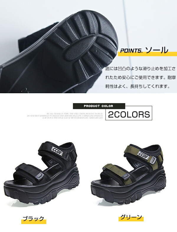 スポーツサンダル 7cmヒール 厚底サ レディース靴 サンダル スポーツサンダル 特集 ブラック グリーン 35(内寸22.5cm) 36(内寸23cm) 37(内寸23.5cm) 38(内寸24cm) 39(内寸24.5cm) 40(内寸25cm)