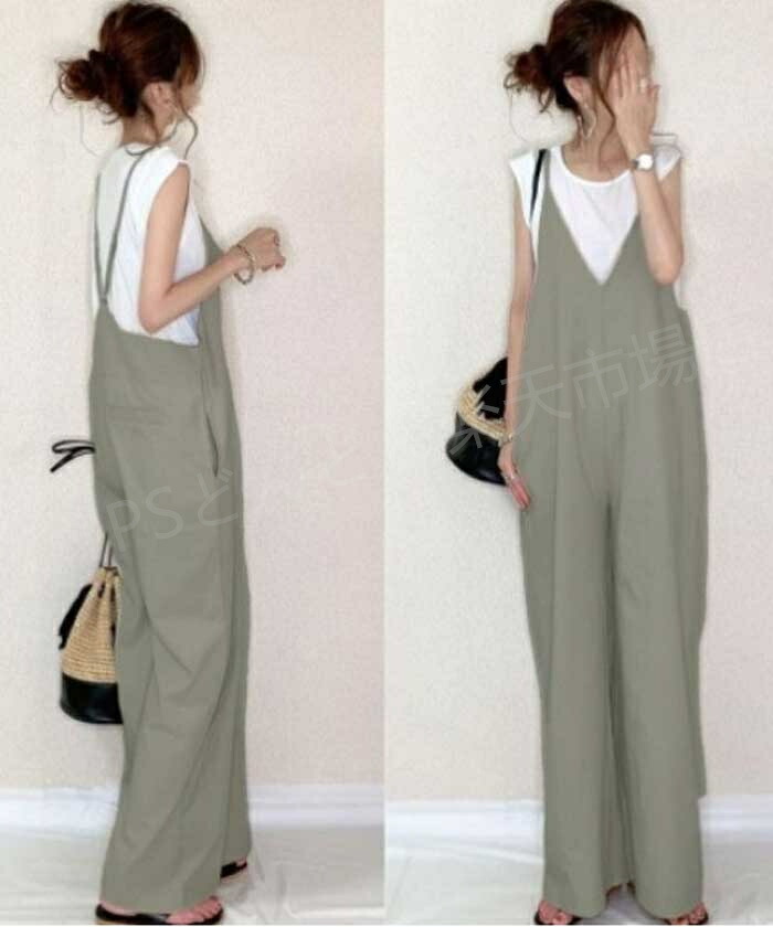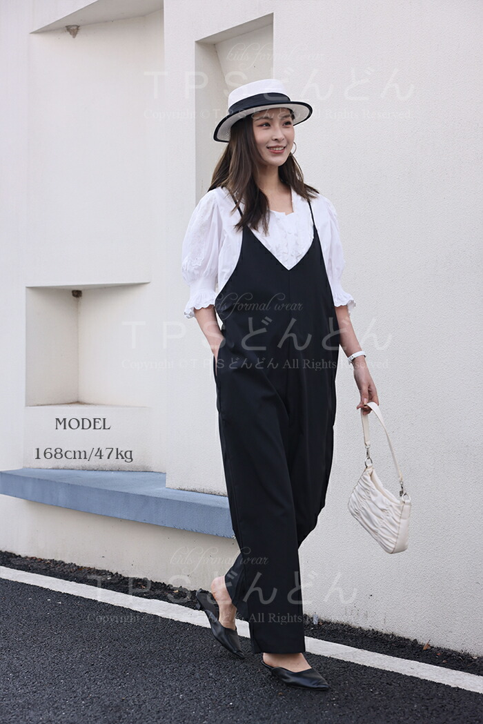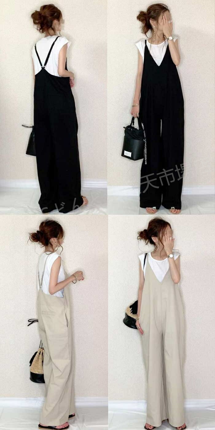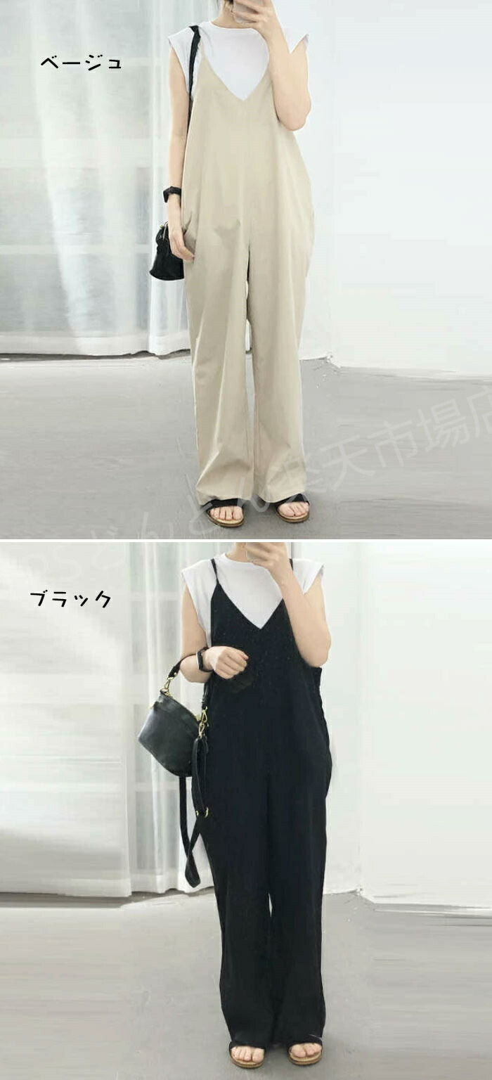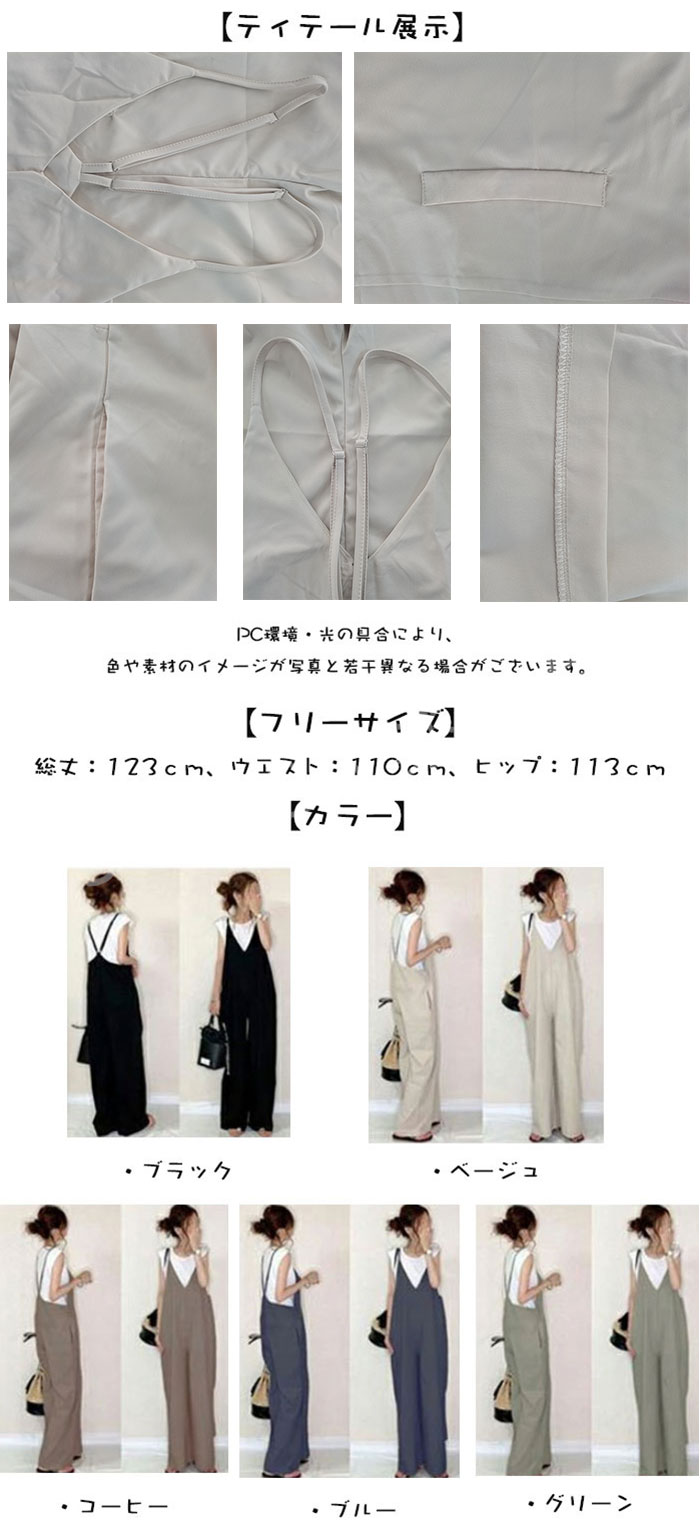 サロペット パンツ 低身長 オールイン レディースファッション 新作 ブラック ベージュ グリーン ブルー コーヒー