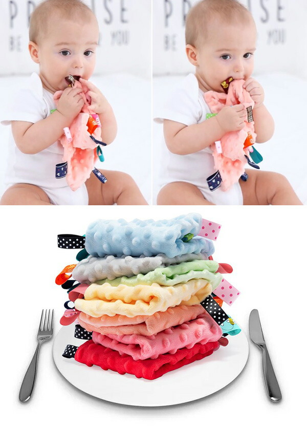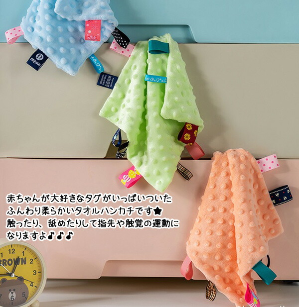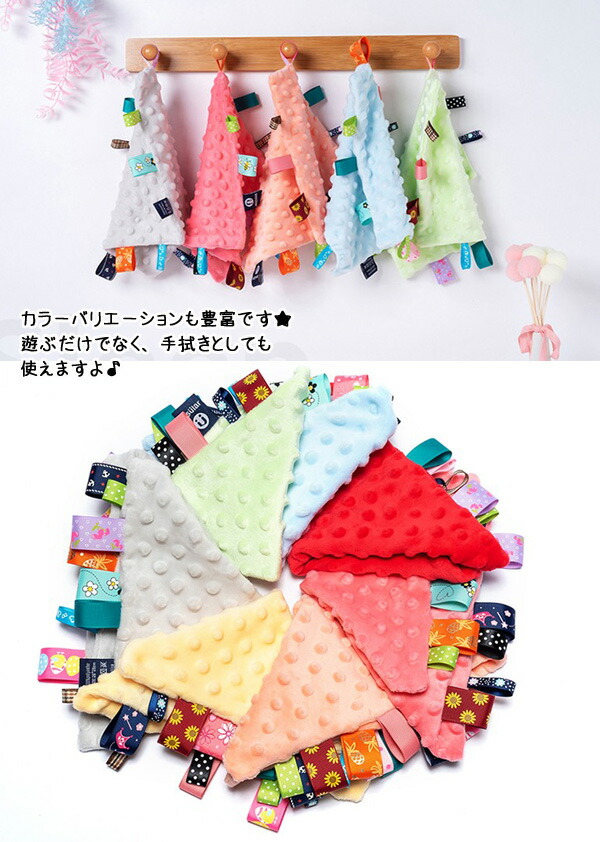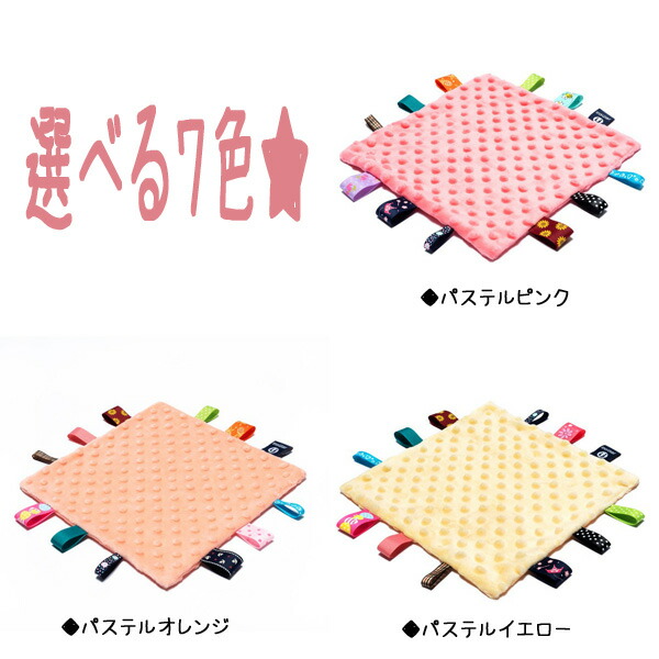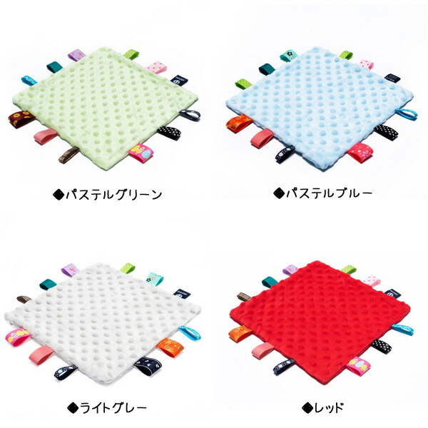 赤ちゃんの大好きなタグがいっぱいタオル おもちゃ ベビー向けおもちゃ おでかけおもちゃ 通販 パステルピンク パステルオレンジ パステルイエロー パステルグリーン パステルブルー ライトグレー レッド