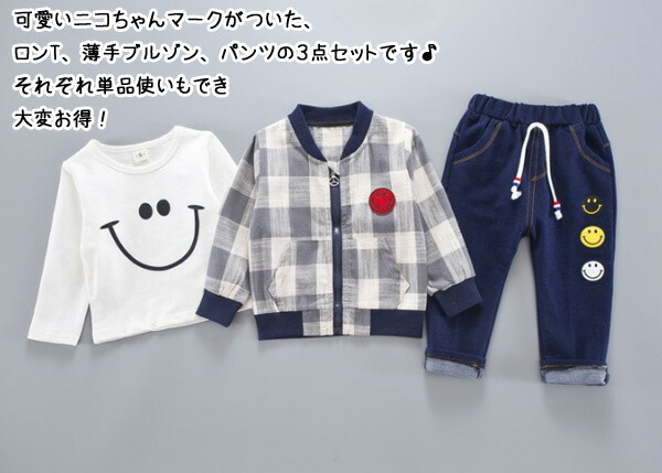 ベビー キッズ ニコちゃんマークが可愛 ベビー ベビー服 ファッション 上下セット セットアップ 続々入荷中 80 90 100 110 レッド ネイビー