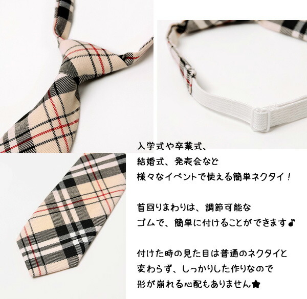 ジュニア 子供用 簡単ネクタイ フォー キッズ アクセサリー ネクタイ 続々入荷中 ネイビーストライプ グリーンストライプ レッドストライプ ブラックストライプ グリーンチェック ベージュチェック レッドチェック ブラックチェック ネイビーチェック