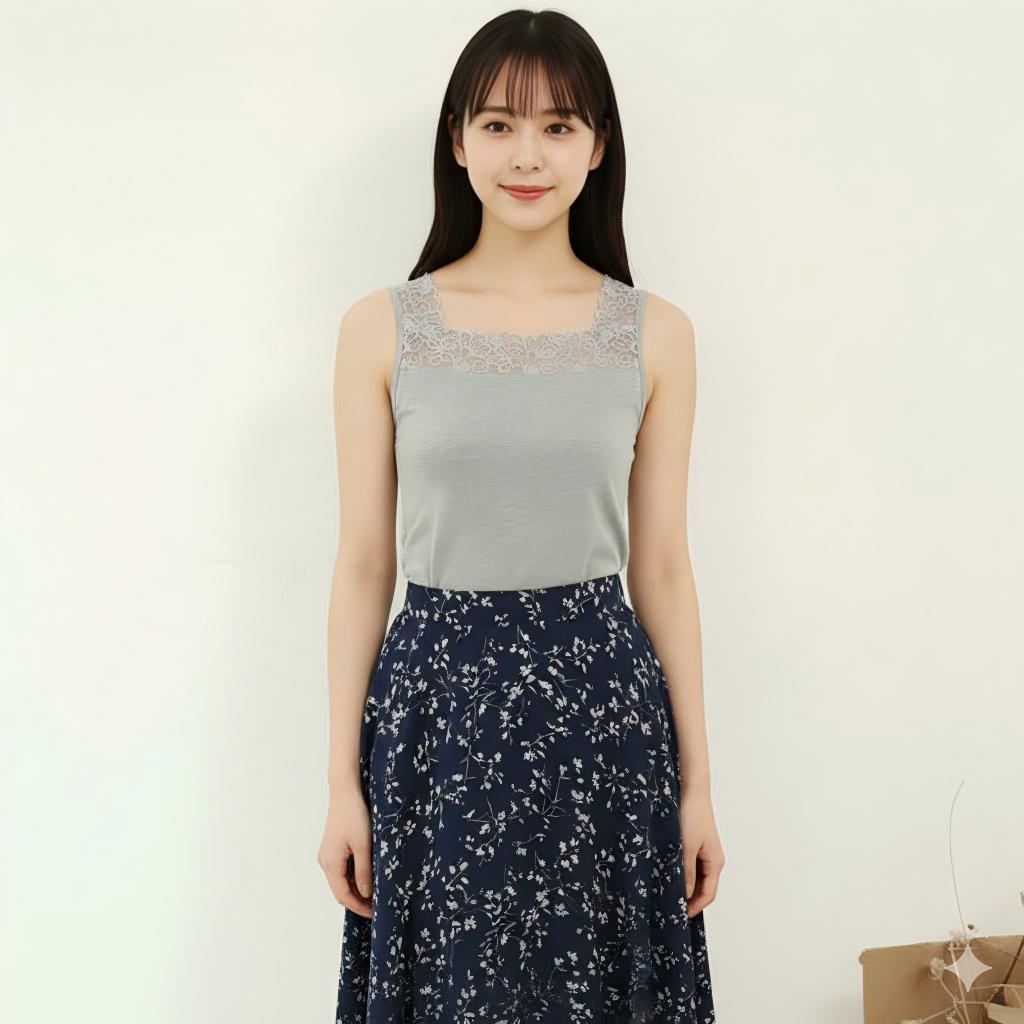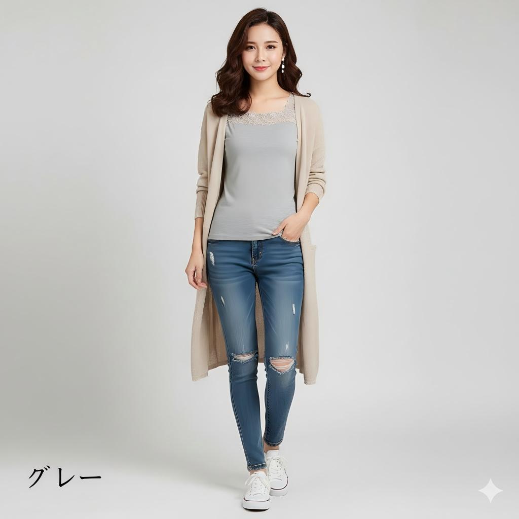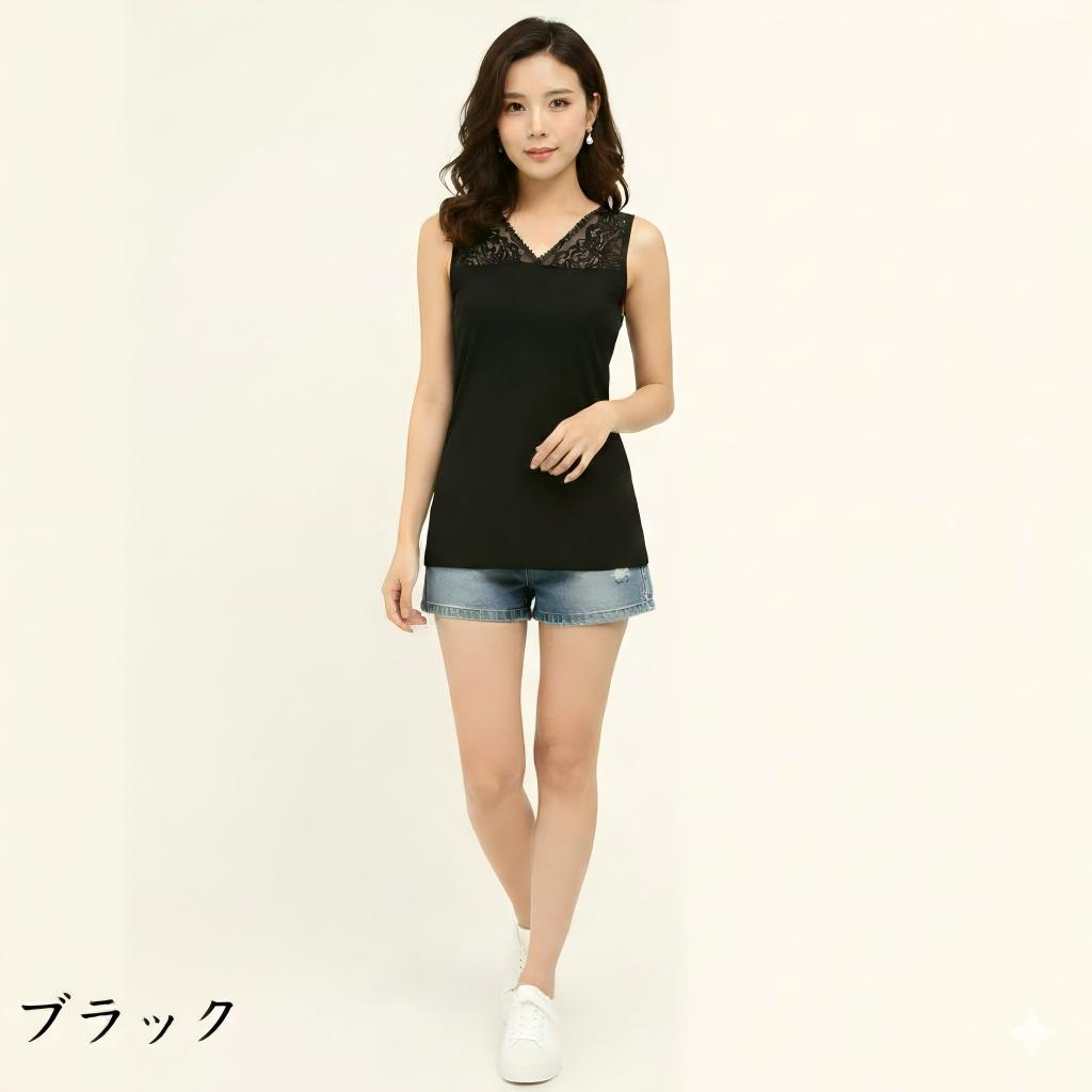 レースインナー 花柄 刺繍両面Vネック トップス タンクトップ 豊富 Vネック&スクエアネック 両面Vネック ブラック ホワイト ネイビー グレー ボルドー サーモンピンク マゼンタ