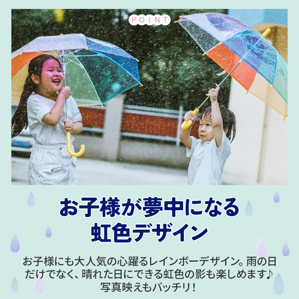 レインボー傘 キッズ 子供 傘 透明 安全 レインボー 男の子 女の子 小学生 幼稚園 通園 通学 手開き 軽量 かわいい PVC 親骨49cm 直径80cm おしゃれ