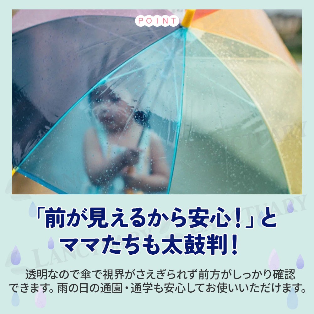 雨の日のお出かけ、お子様は心から楽しんでいますか。このレインボー傘は、そんな雨の日を少しでも明るく、そして安全に過ごせるようにと考えられた、特別な子供用の傘です。