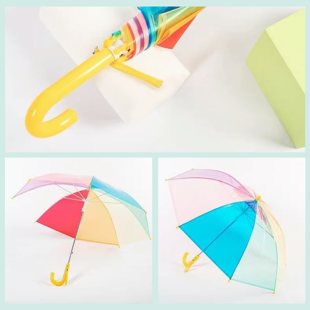 カラー: イエロー(持ち手)× レインボー(傘生地・透明)