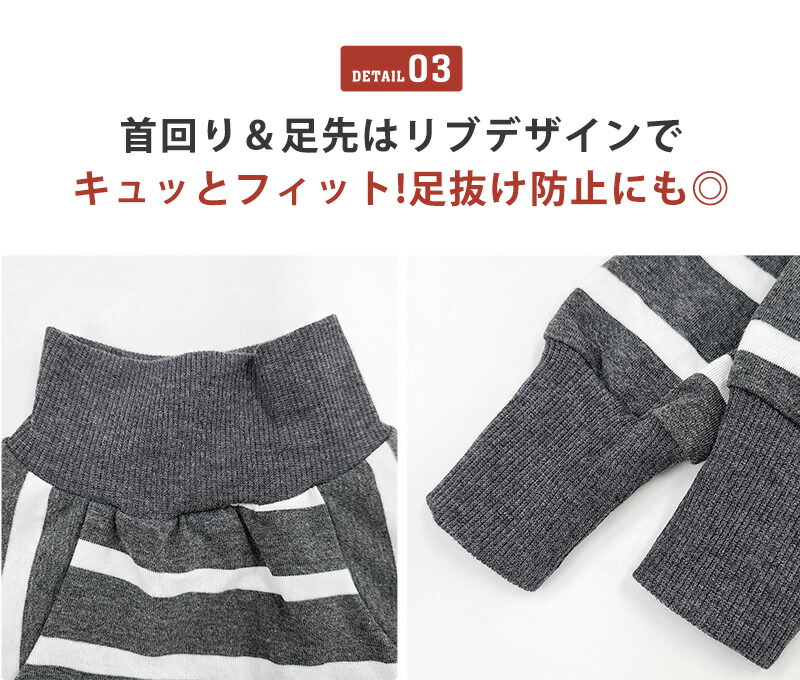 首回り&足先はリブデザインでキュッとフィット!