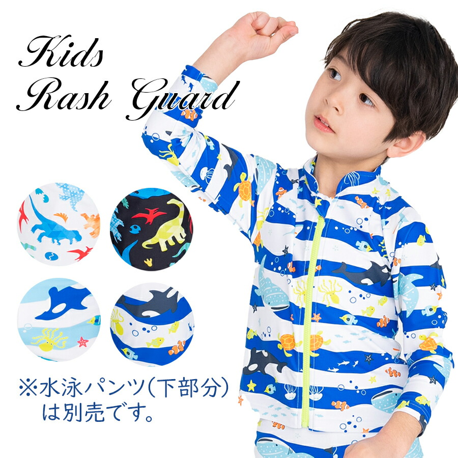 男の子 ラッシュパーカー ラッシュガー キッズ ベビー マタニティ 新登場! ダイナソーホワイト ダイナソーブラック マリンネイビー マリンライトブルー 100 110 120 130