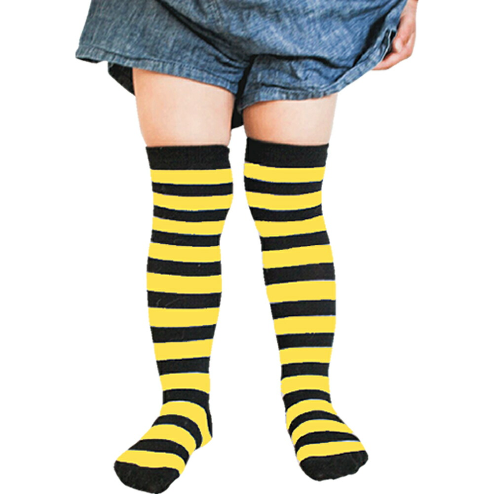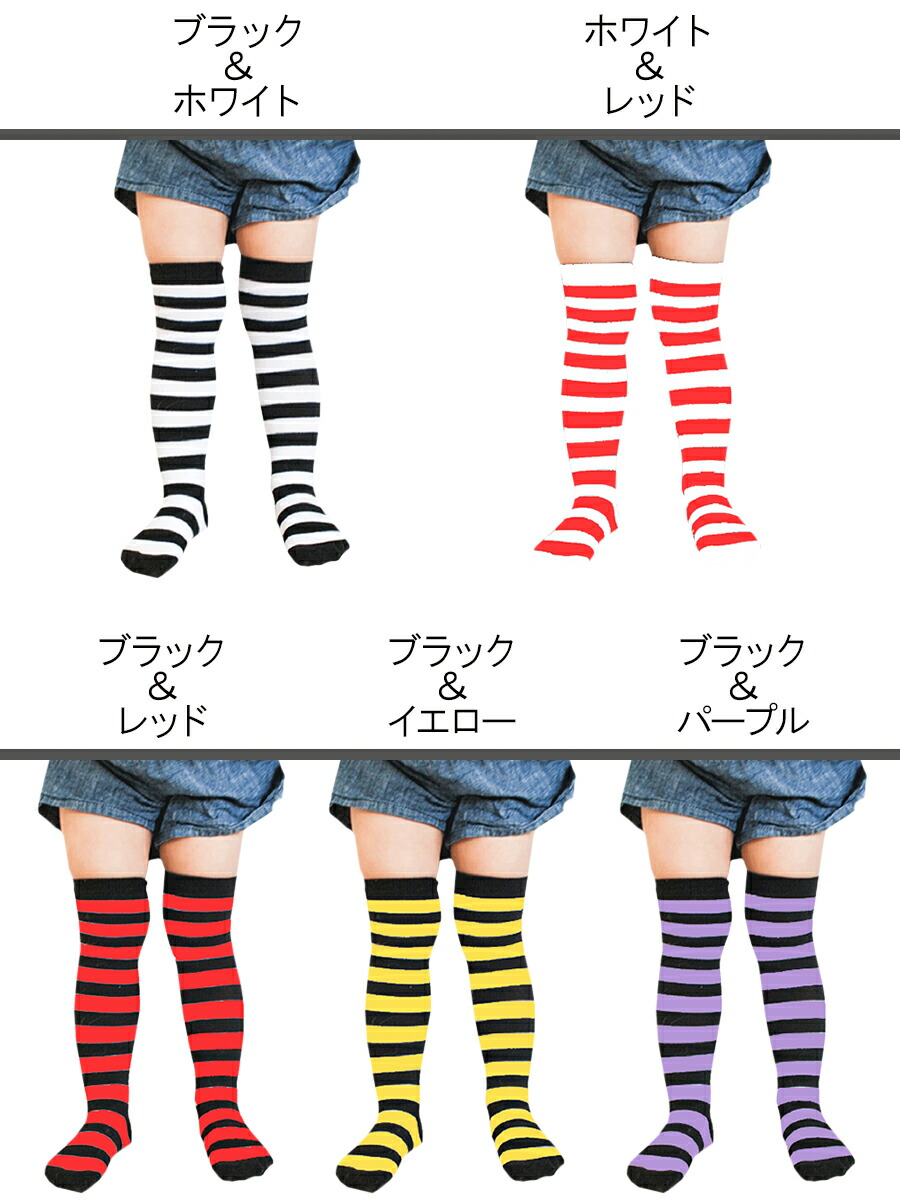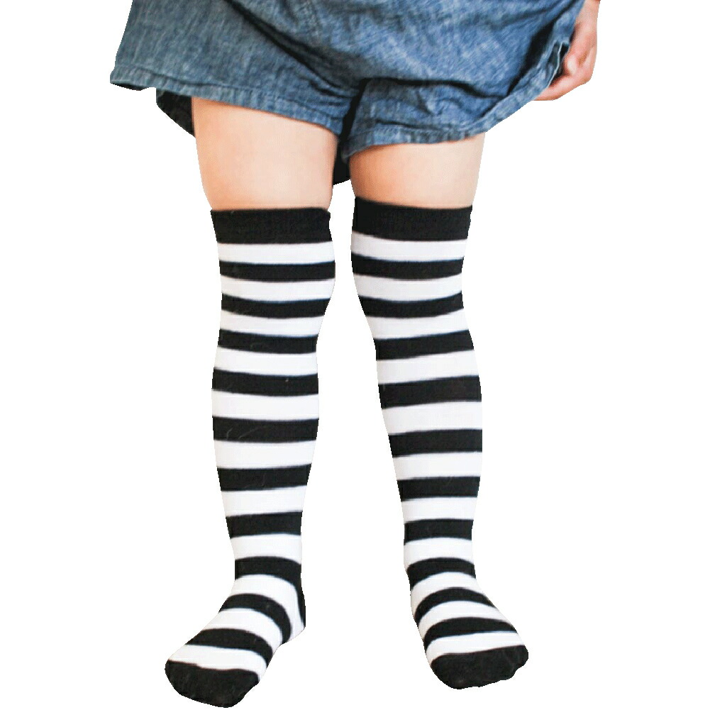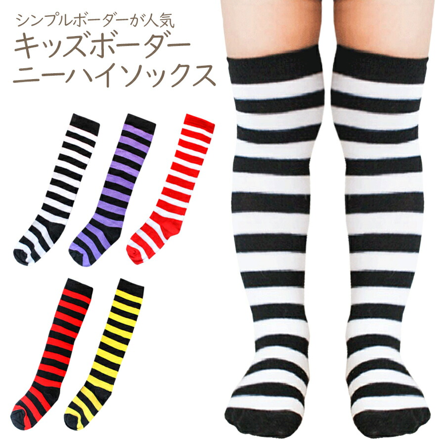 キッズ用ボーダーハイソックス 3-6歳 キッズ ベビー マタニティ 新登場! ブラック&ホワイト ブラック&イエロー ブラック&レッド ブラック&パープル ホワイト&レッド
