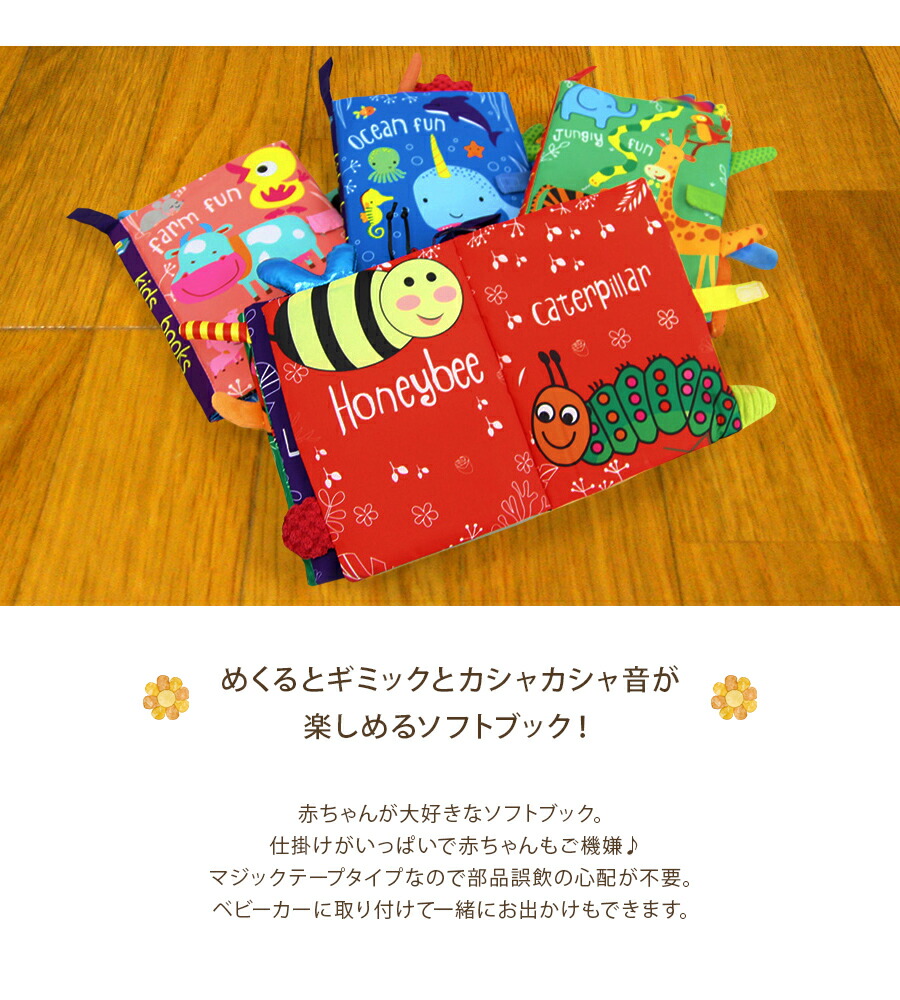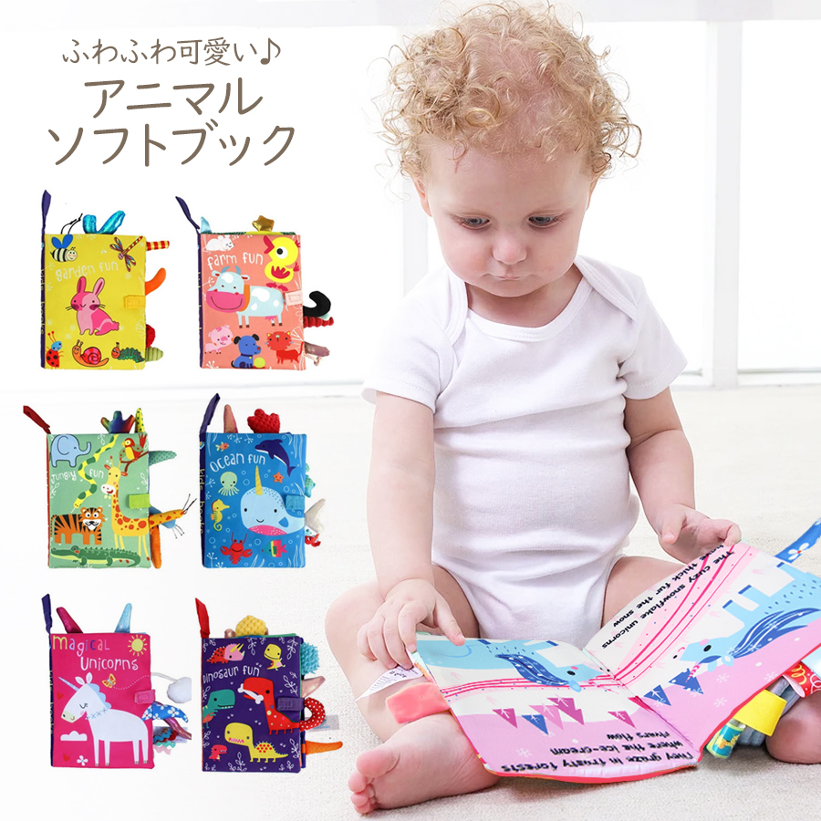 カシャカシャ 布絵本 動物 ソフトブッ おもちゃ ベビー向けおもちゃ 布絵本 人気 ダイナソー ガーデン ファーム ユニコーン ジャングル オーシャン