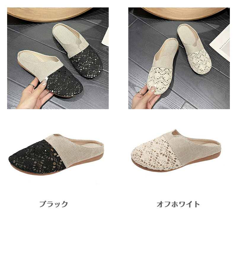 総レース メッシュサンダル サボサンダ レディース靴 サンダル サボ 早い者勝ち ブラック オフホワイト 35(22.5CM) 36(23.0CM) 37(23.5CM) 38(24.0CM) 39(24.5CM) 40(25.0CM)
