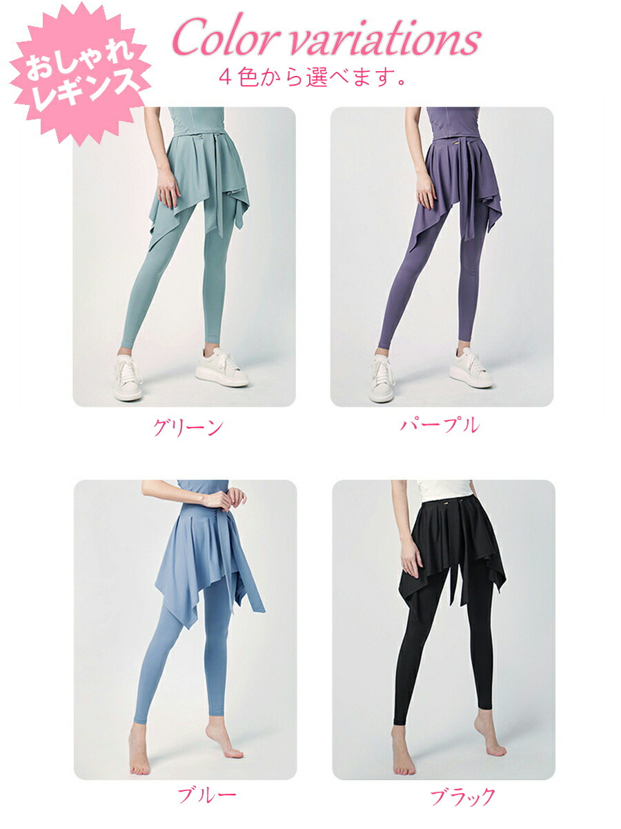 スカート付きレギンス ヨガパンツ レギ ヨガ ピラティス ウェア パンツ 新作 Sサイズ Mサイズ Lサイズ XLサイズ グリーン ブルー パープル ブラック