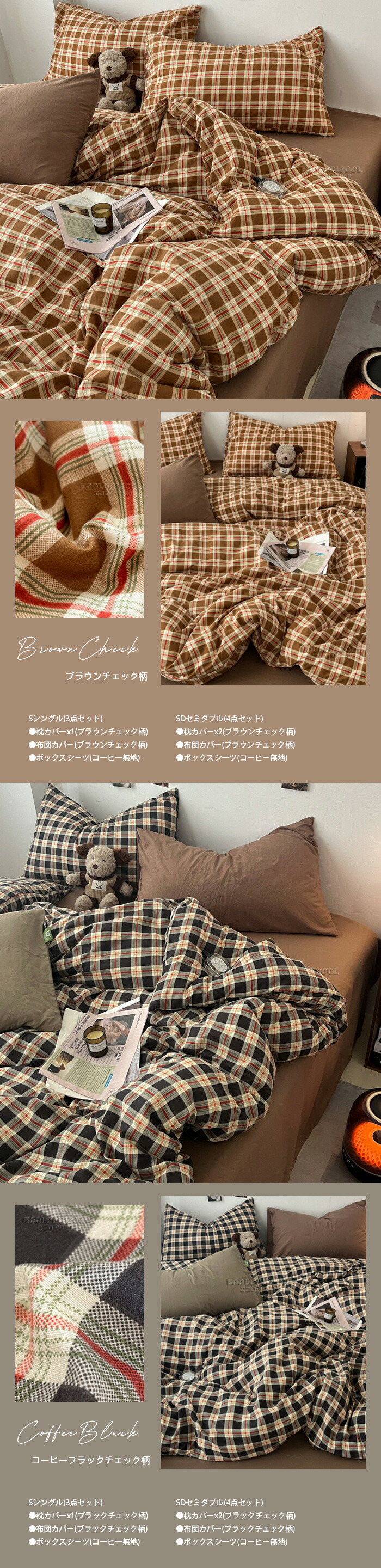 布団カバー セット 3点セット シング インテリア 寝具 収納 通販 レッドブルー ネイビーパープル グリーングレー ブラウンブルー ホワイトグレー グレーブラック イエローパープル ベージュパープル ブルーグレー グリーンパープル ハニーチョコレート チョコレートハニー ブルーチョコレート ブルーブラック クリームパープル ピンクパープル ブラックチェック柄 ネイビーピンク コーヒーカーキー ブラウンチェック柄 コーヒーブラックチェック柄 ブルーココア ピンクパープル(厚手) グレー(厚手) ブルーコーヒー(厚手) シングル セミダブル